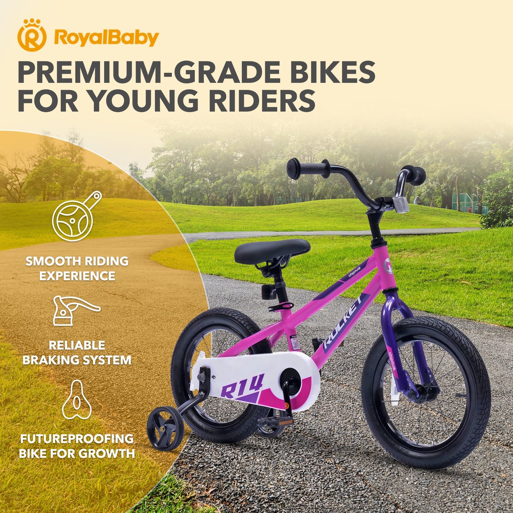 RoyalBaby Rocket Outdoor Children's Bike with Training Wheels, 12 Inch, Pink