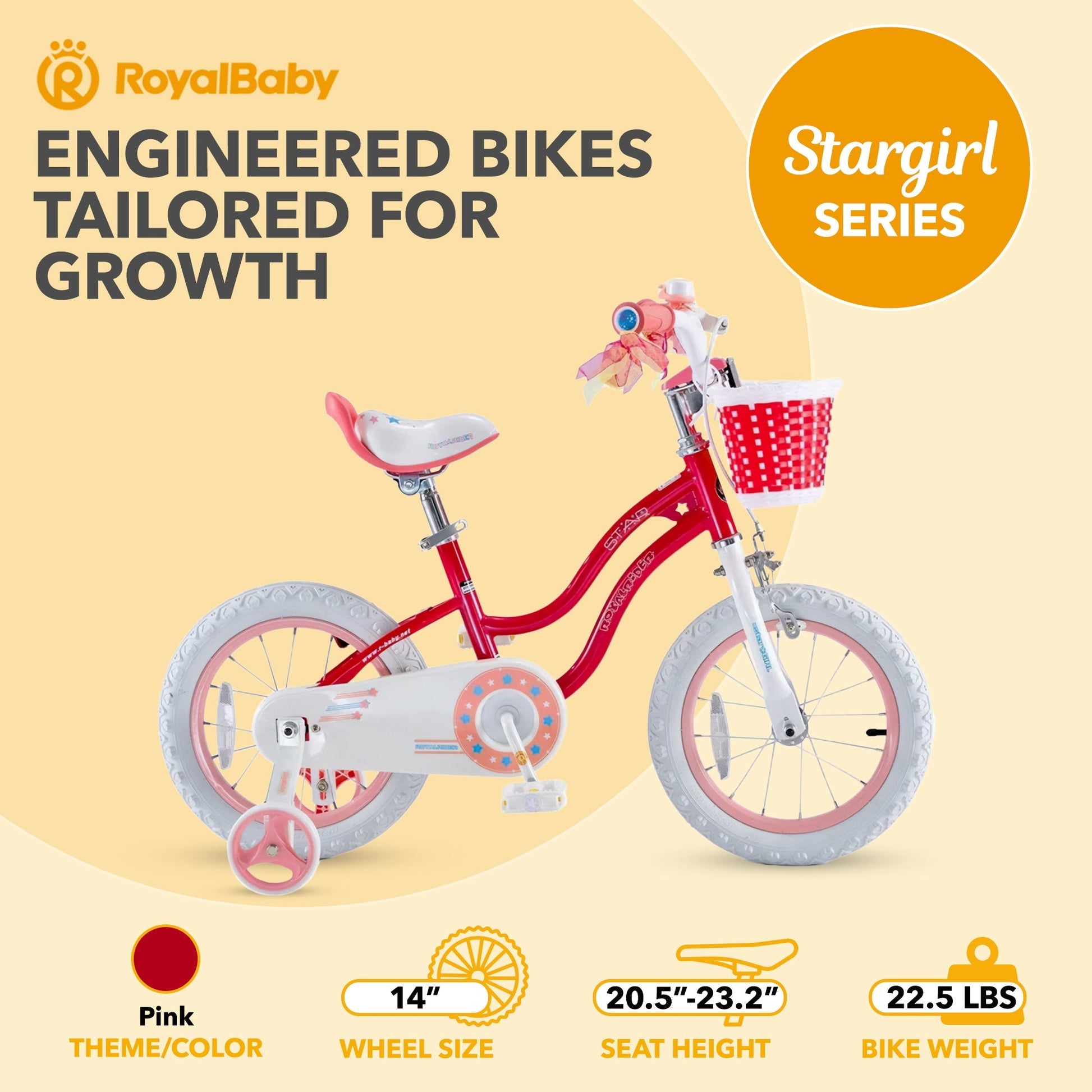 RoyalBaby Stargirl Children's Outdoor Bicycle 14 Inch with Training Wheels, Pink