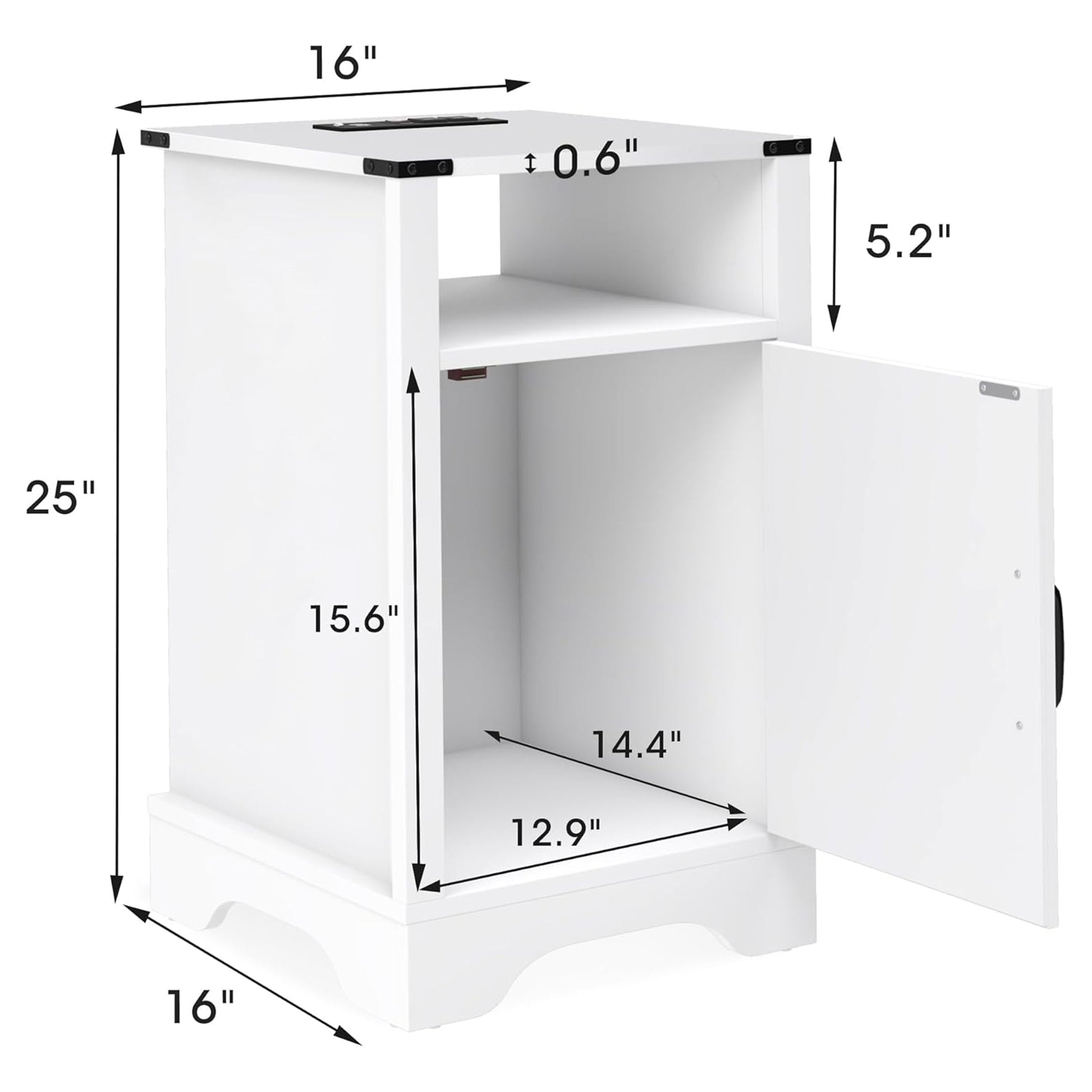 RoyalCraft Farmhouse Bedroom Nightstand with Charging Station, Set of 2, White