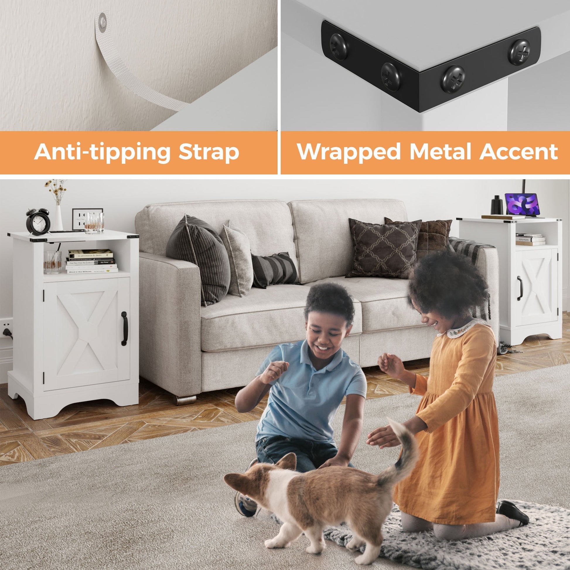 RoyalCraft Farmhouse Nightstand, Bedroom Table with Charging Station, White