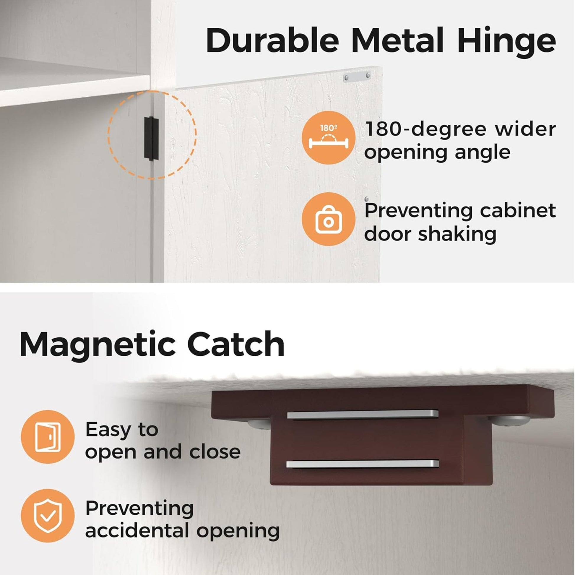 - 180-degree door opening with metal hinges and magnetic latch ensures quick, secure access to your items