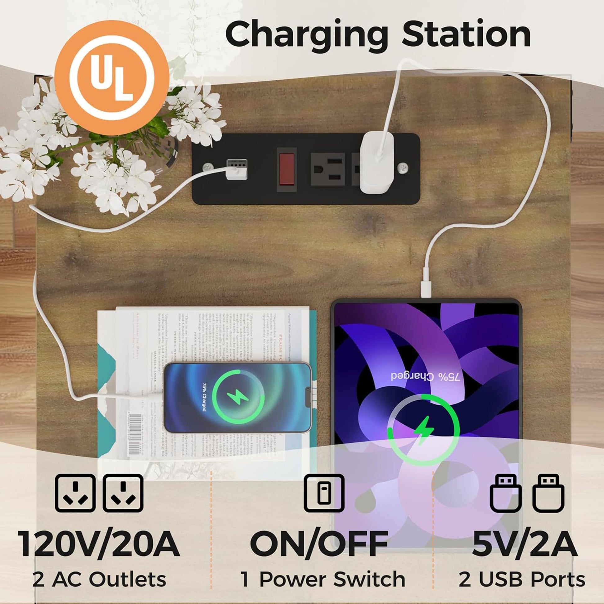 What truly sets this nightstand apart is the built-in charging station, equipped with 2 USB ports, 2 outlets, 6.6-foot-long power cord, and a control switch, designed for powering your phone, lamp, or laptop right at your bedside or sofa.
