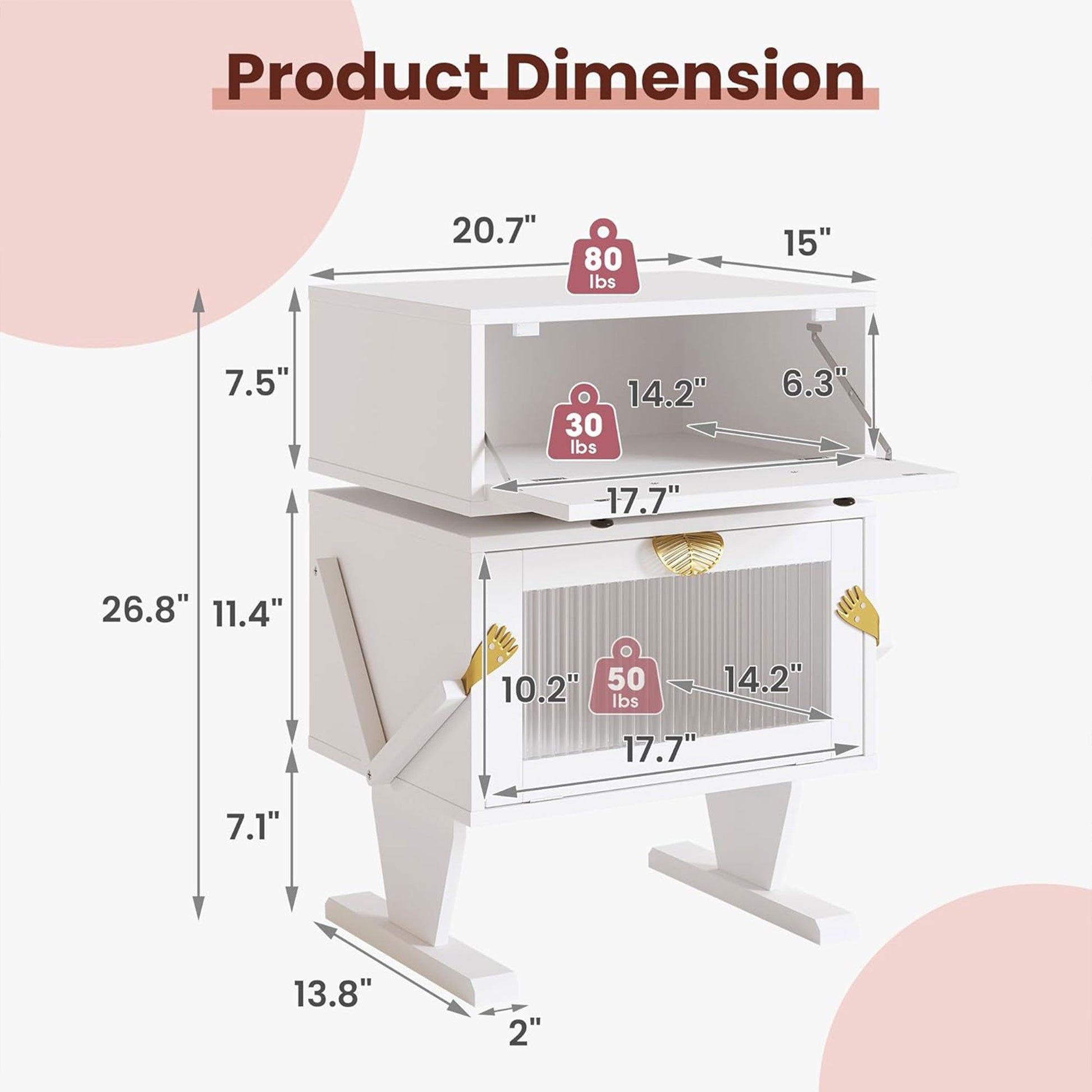 Crafted from durable MDF wood and coated in eco-friendly paint, this nightstand is designed with safety in mind to meet ASTM standards, making the bedside table a smart, family-safe option. The 360-degree rotating top drawer spins silently in both directions, offering smooth access from either side. Below, a spacious storage drawer features a pull-down design with a reinforced glass door for added durability and child-friendly safety.
