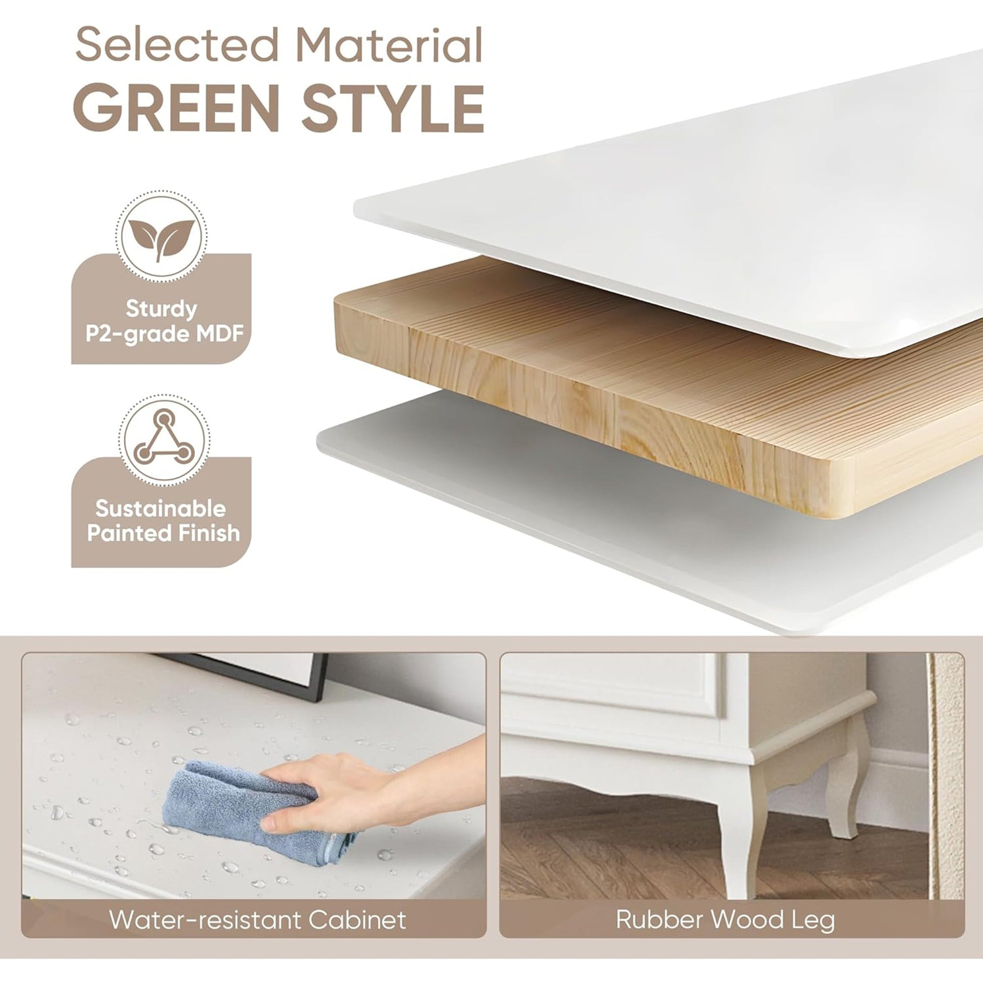 Constructed from durable P2-grade MDF, the dresser features a water-repellent finish that is easy to maintain and scratch-resistant. This piece is built to stand up to everyday use while adding charm and functionality to your bedroom, entryway, or hallway.