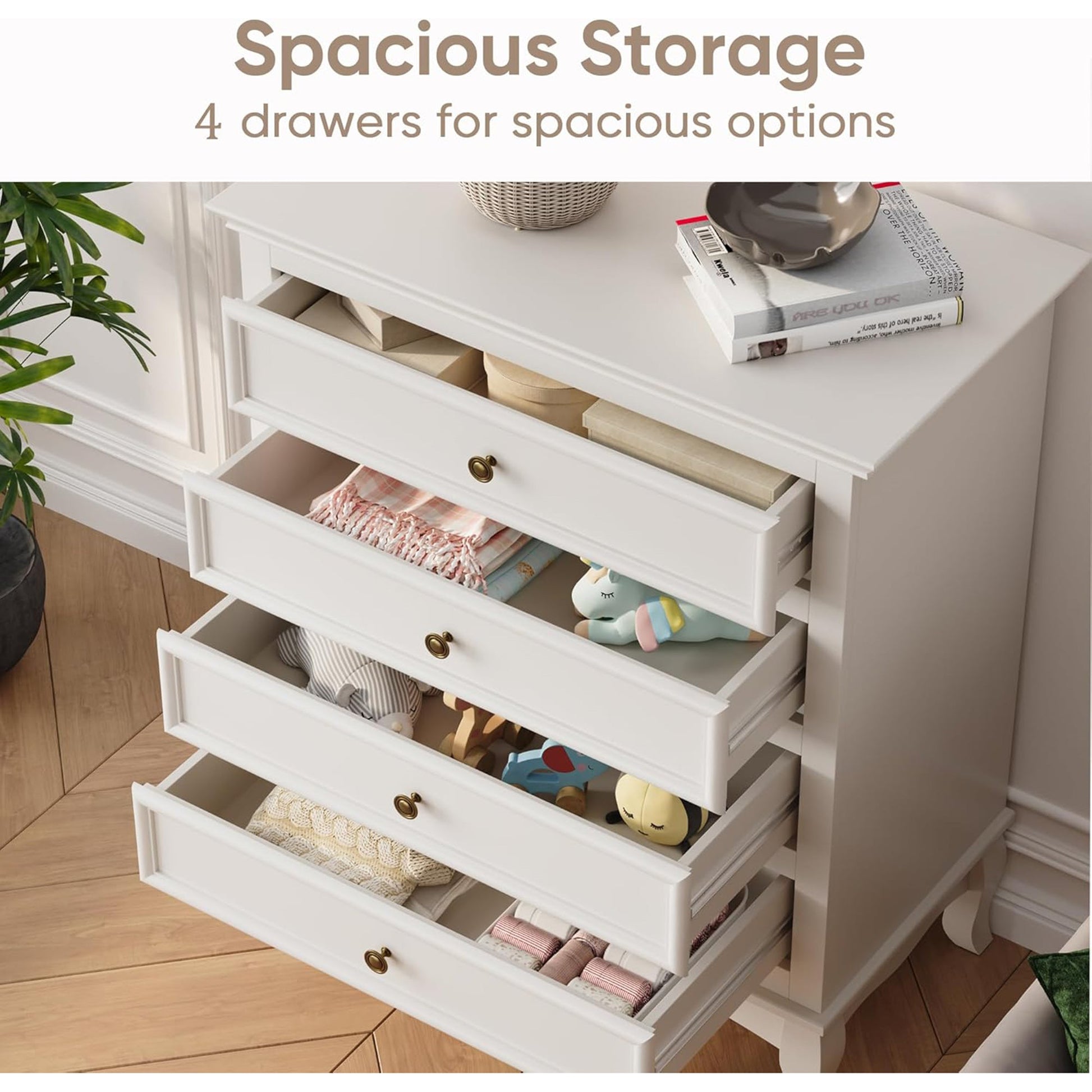 Whether you're organizing clothes, storing personal items, or displaying decor, this dresser offers generous space across 4 deep drawers. The sturdy top surface provides the perfect place for a lamp, decorative piece, or daily essentials. Each drawer glides smoothly thanks to high-quality ball-bearing slides, making access easy and quiet.