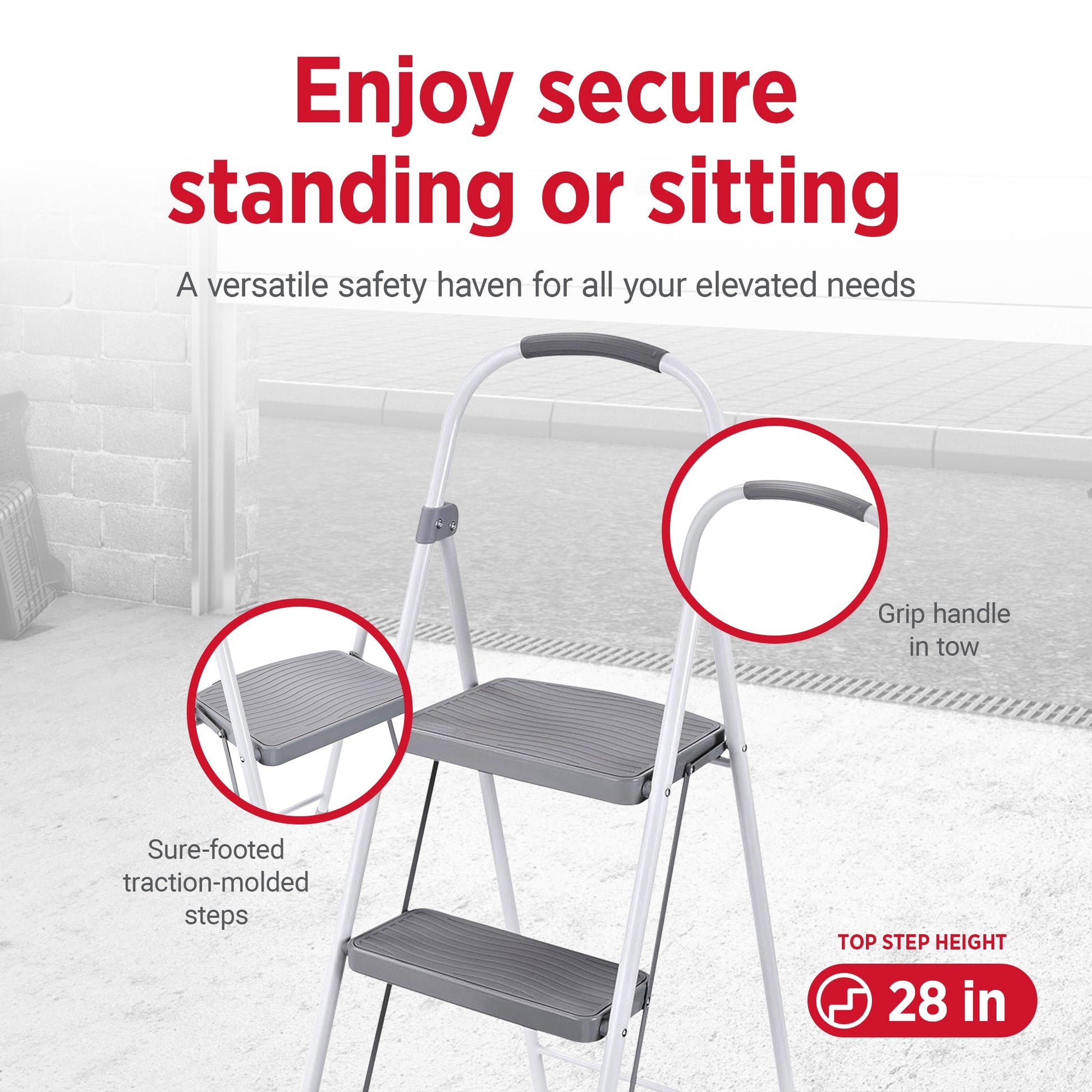 This lightweight and portable step ladder, weighing just 14 pounds, ensures you can effortlessly transport it to any corner of your home or workspace, providing convenience on demand. Designed with your safety in mind, this home essential boasts a sturdy and secure construction that can support up to 225 pounds. Achieving an ANSI Type 2 Duty Rating, its stable steel framework, traction-molded steps, and rubber-padded feet offer a reliable platform for various tasks.