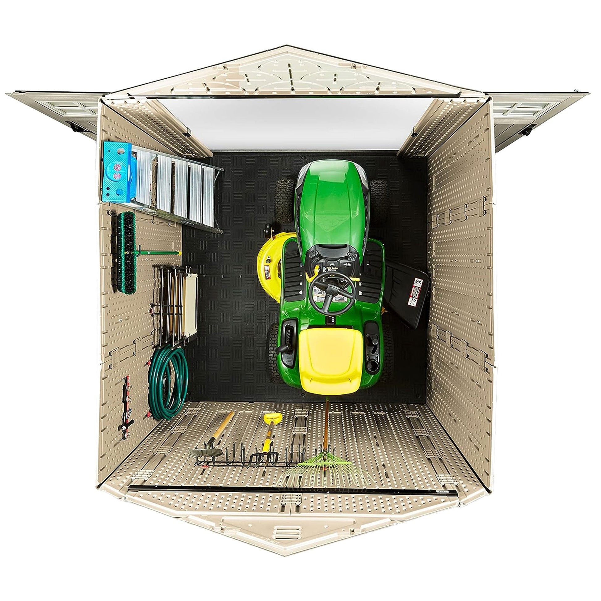 - Large, 332 cubic feet interior provides enough room to fit a riding mower and many other outdoor machines with ease