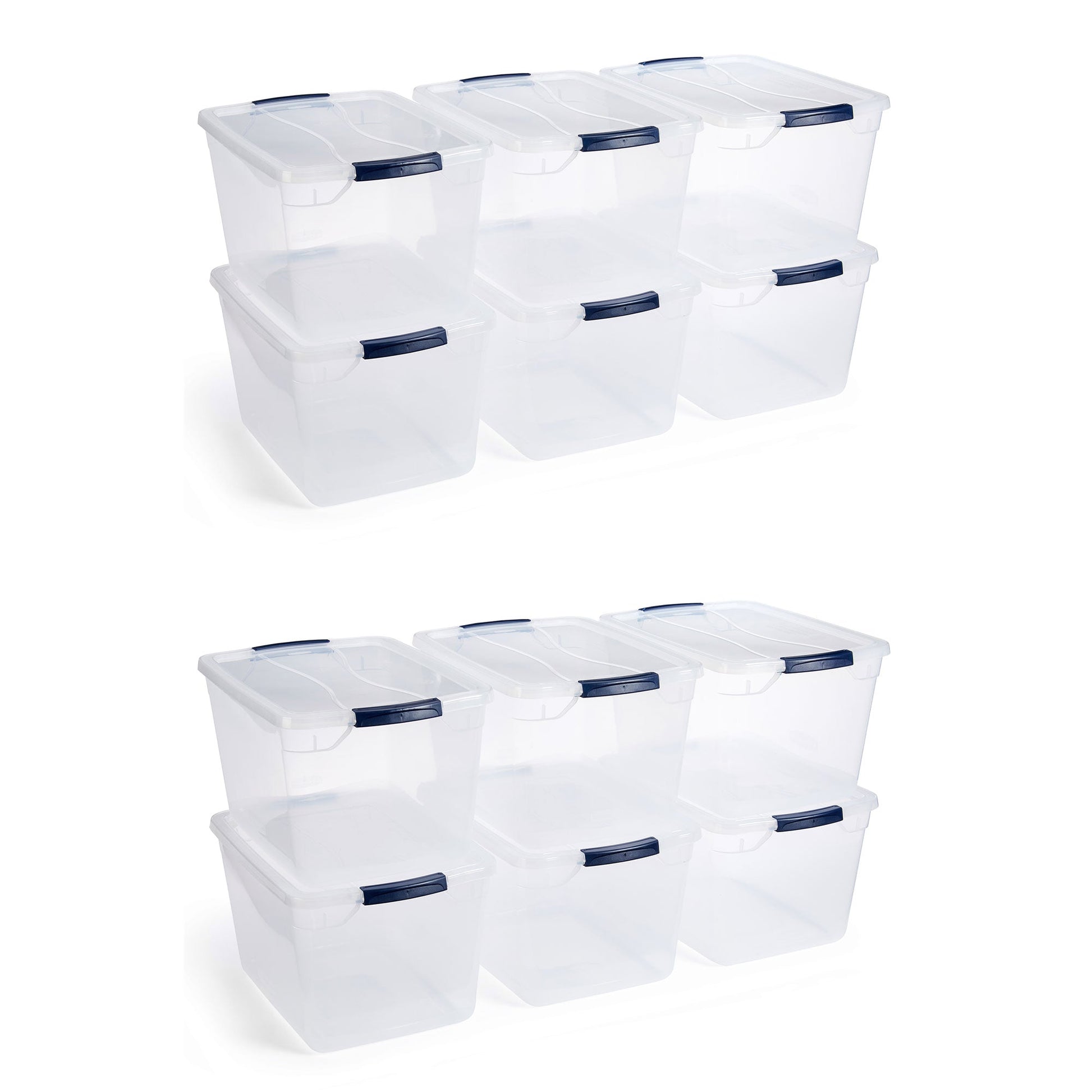 When clutter threatens to take over your space, reign it in with help from these (6) Rubbermaid Cleverstore 32-Quart Plastic Storage Containers. These clear storage bins make it easy to organize your things and see exactly where they are.