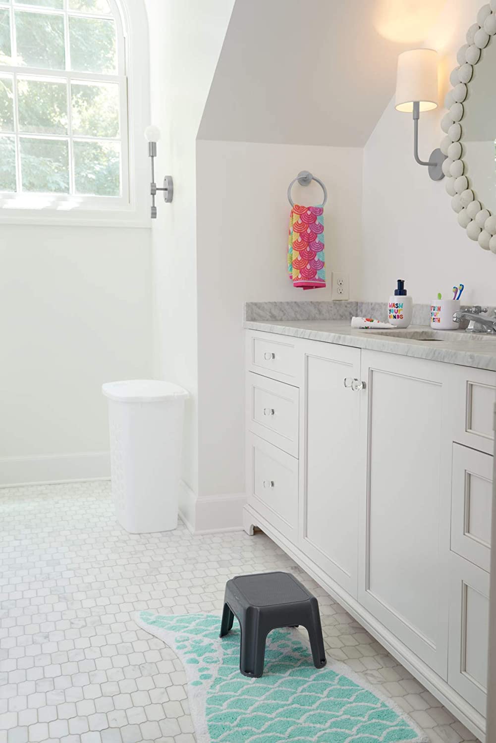 This single-step stool is made of durable plastic and features a 200-pound weight capacity. The stool has a skid-resistant top that gives your feet a sturdy surface and the bottom has skid-resistant feet, ensuring the stool has a solid grip. Both the top and bottom combine to provide an excellent grip to help keep you safe when elevated off the ground. The stool is portable too, making it an excellent option to move from kitchen to basement and anywhere else around your home. The dimensions for this kid's stool are 12.2 inches long, 10 inches wide, and 7 inches tall.