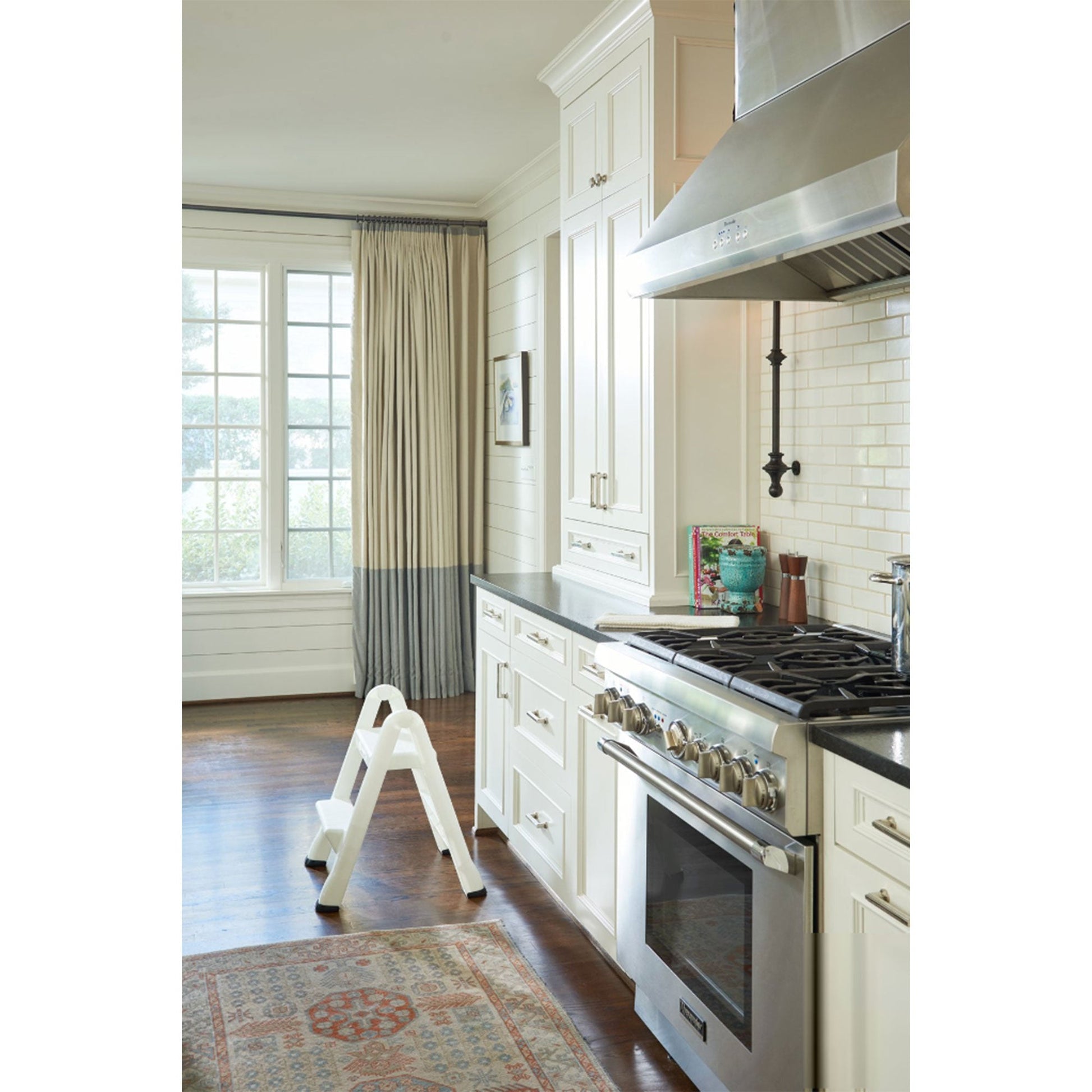 Even better, this step stool folds up so it doesn't take up a lot of space in your closets when it's not in use. Made of durable, white plastic, this stepping stool has a clean, simple design that looks great and lasts a long time.