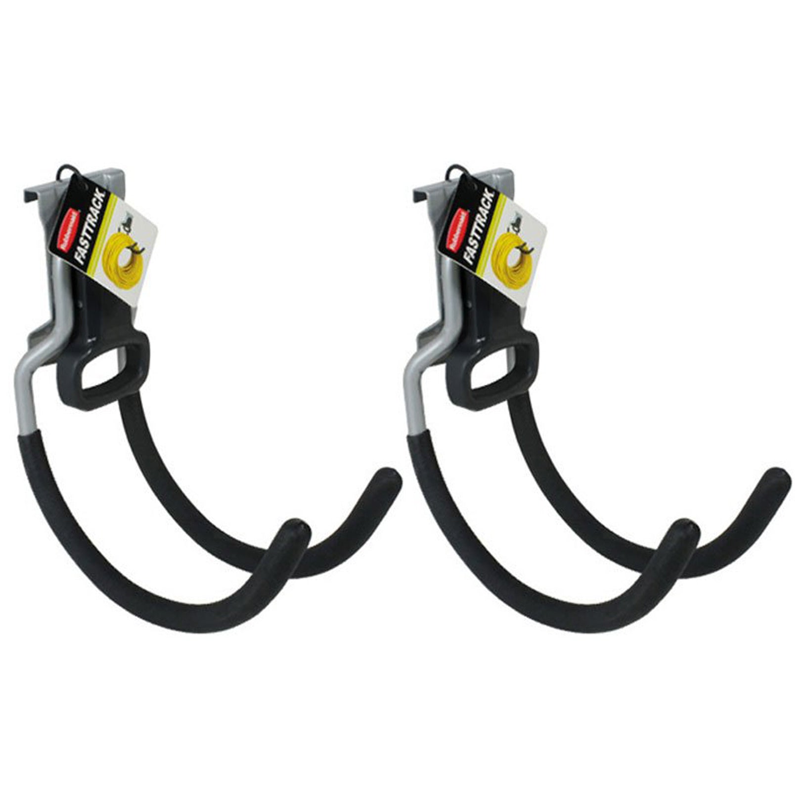 Organize your garage clutter and conveniently find what you are looking for with these 2 packs of Fast Track Wall Mounted Multi-Purpose Garage Utility Hooks in Satin Nickel from Rubbermaid. Can be attached to a Fast Track rail that you already own or will buy in the future.