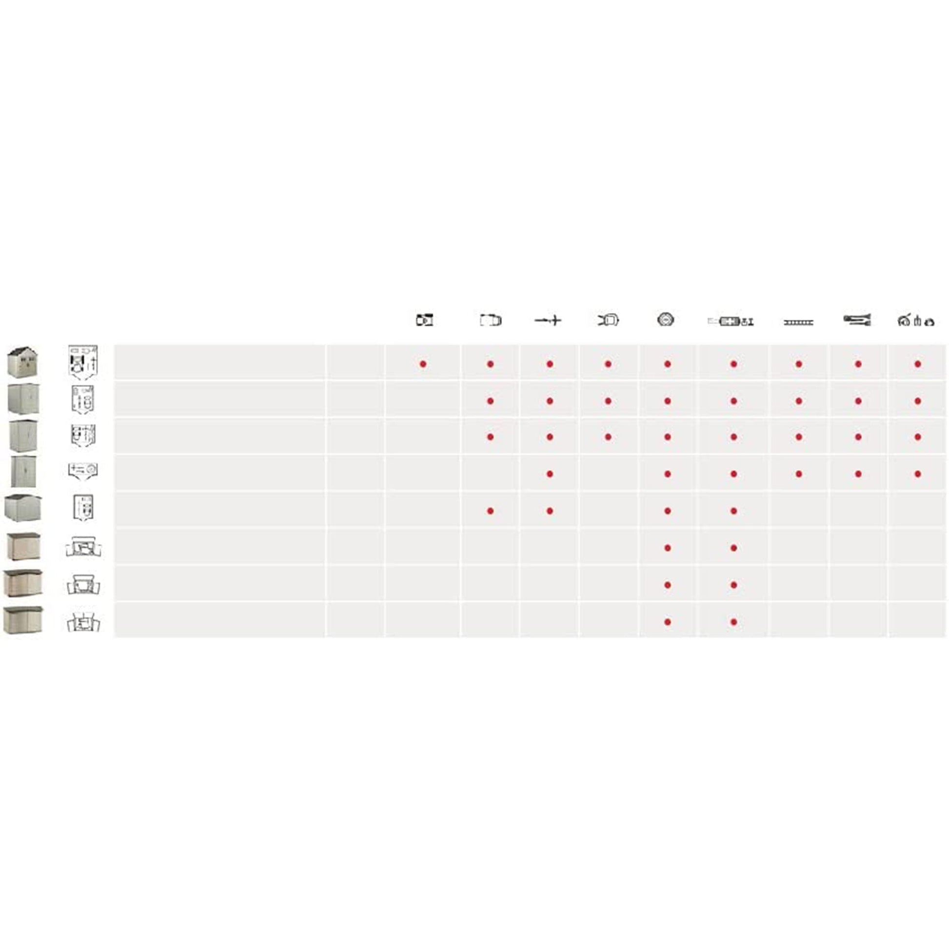 It is the only double-walled storage shed in its class (horizontal storage sheds with 15 - 25 cubic feet of storage space). The Horizontal Storage Shed is durable and weather-resistant. An easy, hassle-free storage solution, it comes with a heavy duty, impact resistant floor and has a storage capacity of 18 cubic feet. The shed can accommodate one wood shelf.