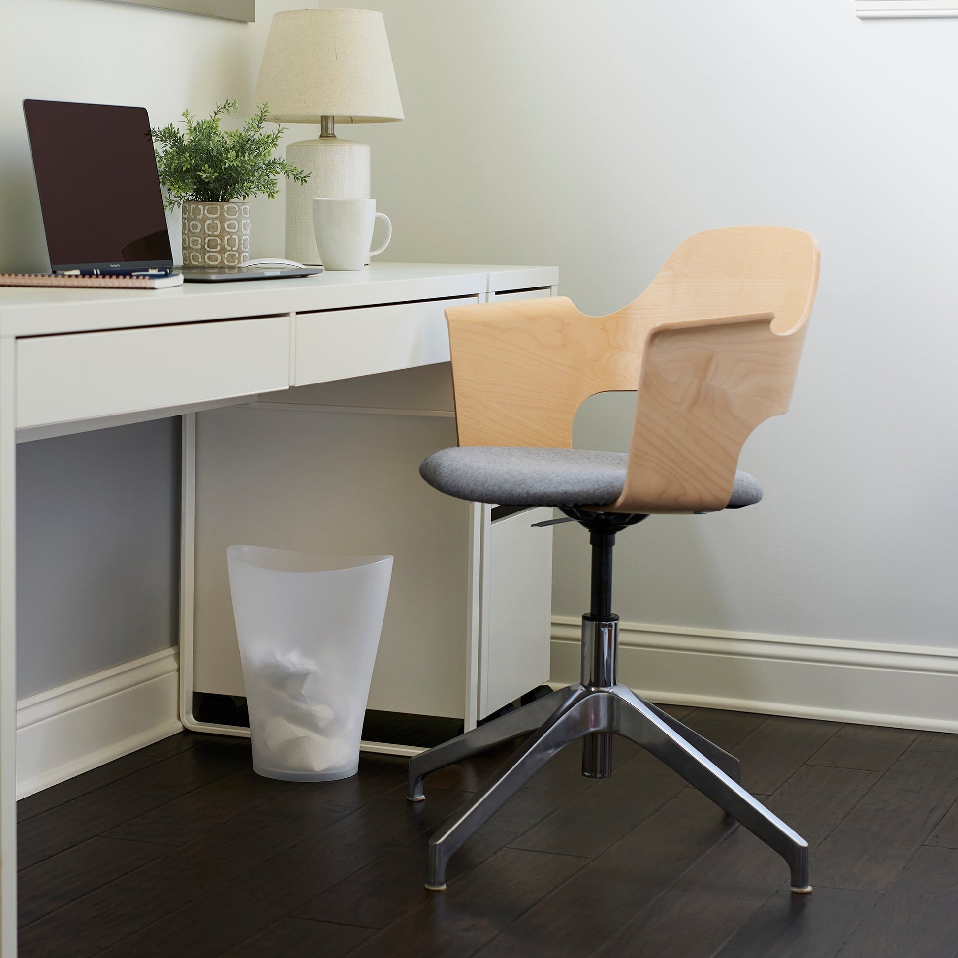 - Collect trash or recycling in this compact, contemporary wastebasket
