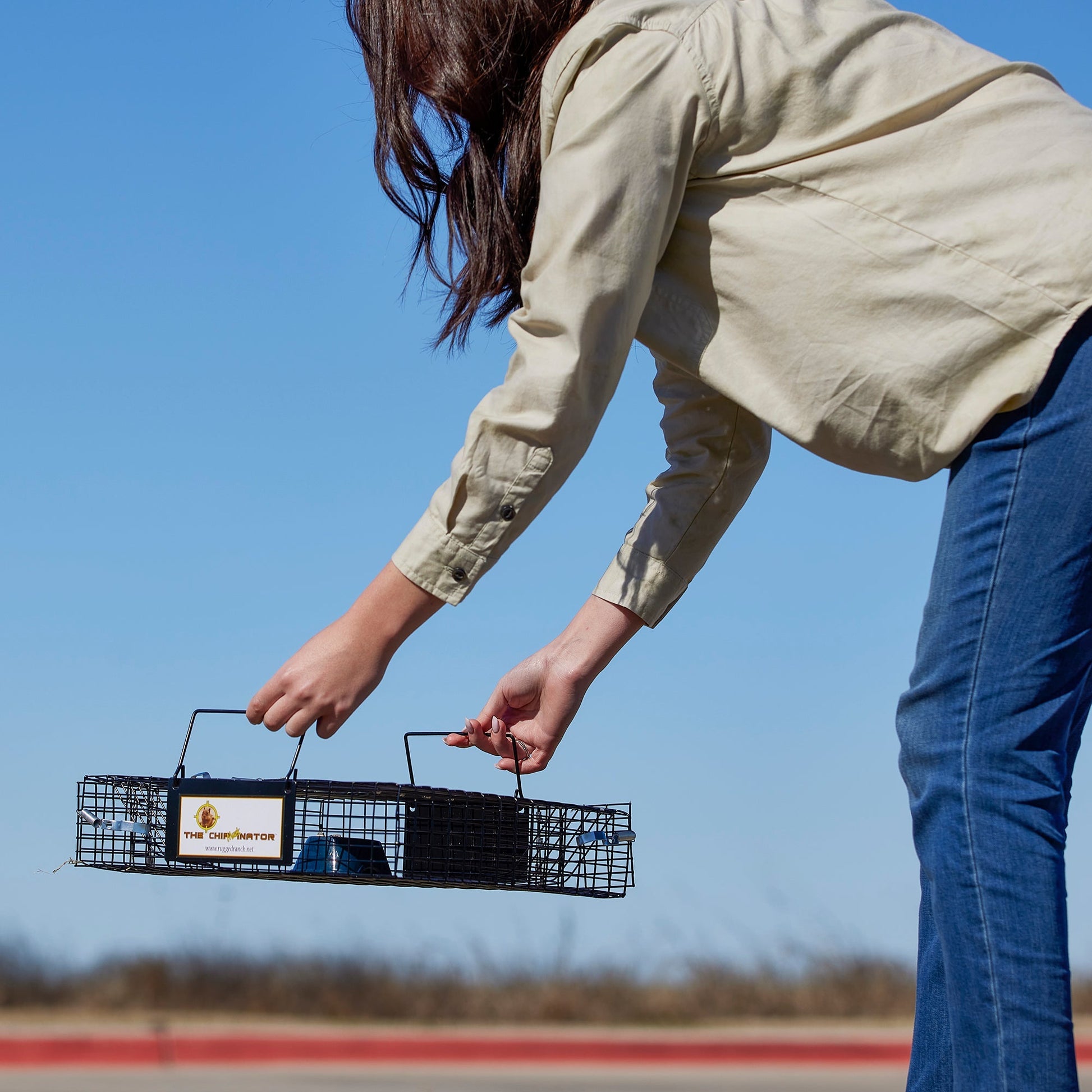 Don't worry: this humane wildlife trap keeps chipmunks, squirrels, and other small mammals confined and safe without harming them once they're trapped within its metal wire walls. 2 doors provide better access to your bait and you can entice up to 20 creatures in just a few hours with the right placement and incentive.