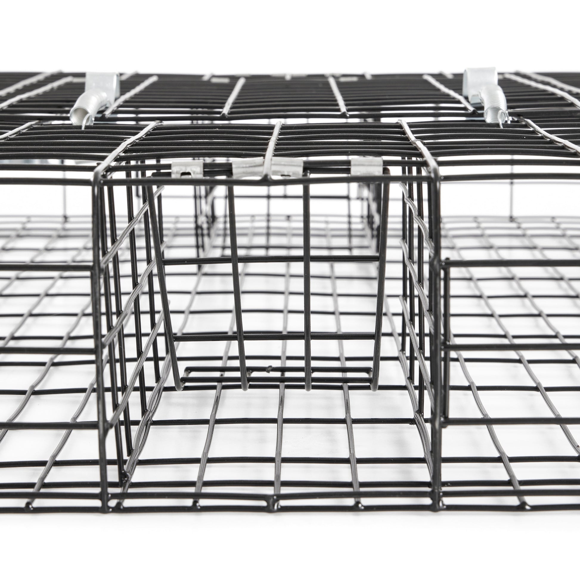 Don't worry: this humane wildlife trap keeps squirrels, chipmunks, and other small mammals confined and safe without harming them once they're trapped within its metal wire walls. 2 doors provide better access to your bait and you can entice up to 24 creatures in just a few hours with the right placement and incentive. A drop-pan provides easy waste disposal.