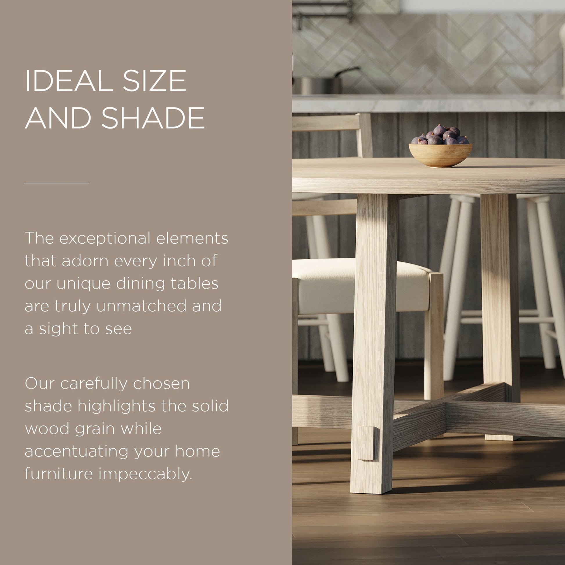 Timeless and transitional, our Sasha Round Wood Dining Table is the epitome of comfortable and chic dining. You’ll enjoy simple pleasures as this dining table becomes your new favorite place for respite while you relish your morning tea. You’ll love the hand-crafted details like its cross-beam base, weathered wooden finish, and a silhouette that easily pairs with any style of seating. This round dining table is handcrafted and given a neutral-toned finish to mesh with your home’s aesthetic seamlessly. Flawless as a kitchen table for casual dining, or dress it up in your dining room—either way, this round table is a welcomed addition to your dining endeavors. At Maven Lane, our home furniture is meticulously handcrafted with methods to stand the test of time including hand finishes displaying an impeccable attention to detail, and mortise-and-tenon joinery techniques which promote strength and longevity. Furthermore, by utilizing premium materials and kiln-dried hardwood in our solid wood furniture, we’ve solidified the superiority of craftsmanship you’ve come to expect from Maven Lane. Be sure to view the other pieces in our furniture collection. We've carefully curated an entire medley of heirloom-quality pieces that can be mixed and matched to create the aesthetic your home has been seeking. Given the handmade nature of our products, minimal variations may occur in color, tone, and wood finish.