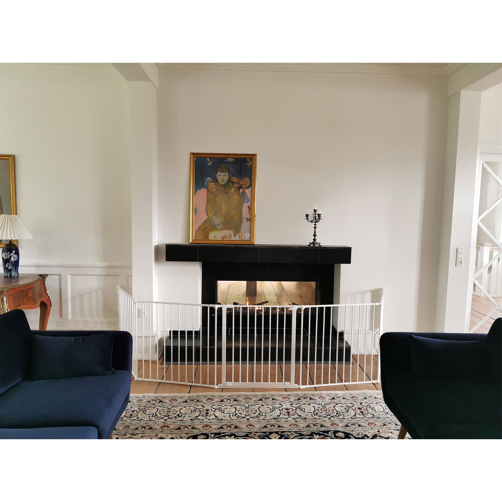 This extra-long and flexible pet gate fits a variety of home sizes and extends using as many sections needed to seamlessly fit your space. Ensure your pet is safe on the divider's other side with the safety gate. This gate opens in both directions and locks in place automatically, providing another component of protection.