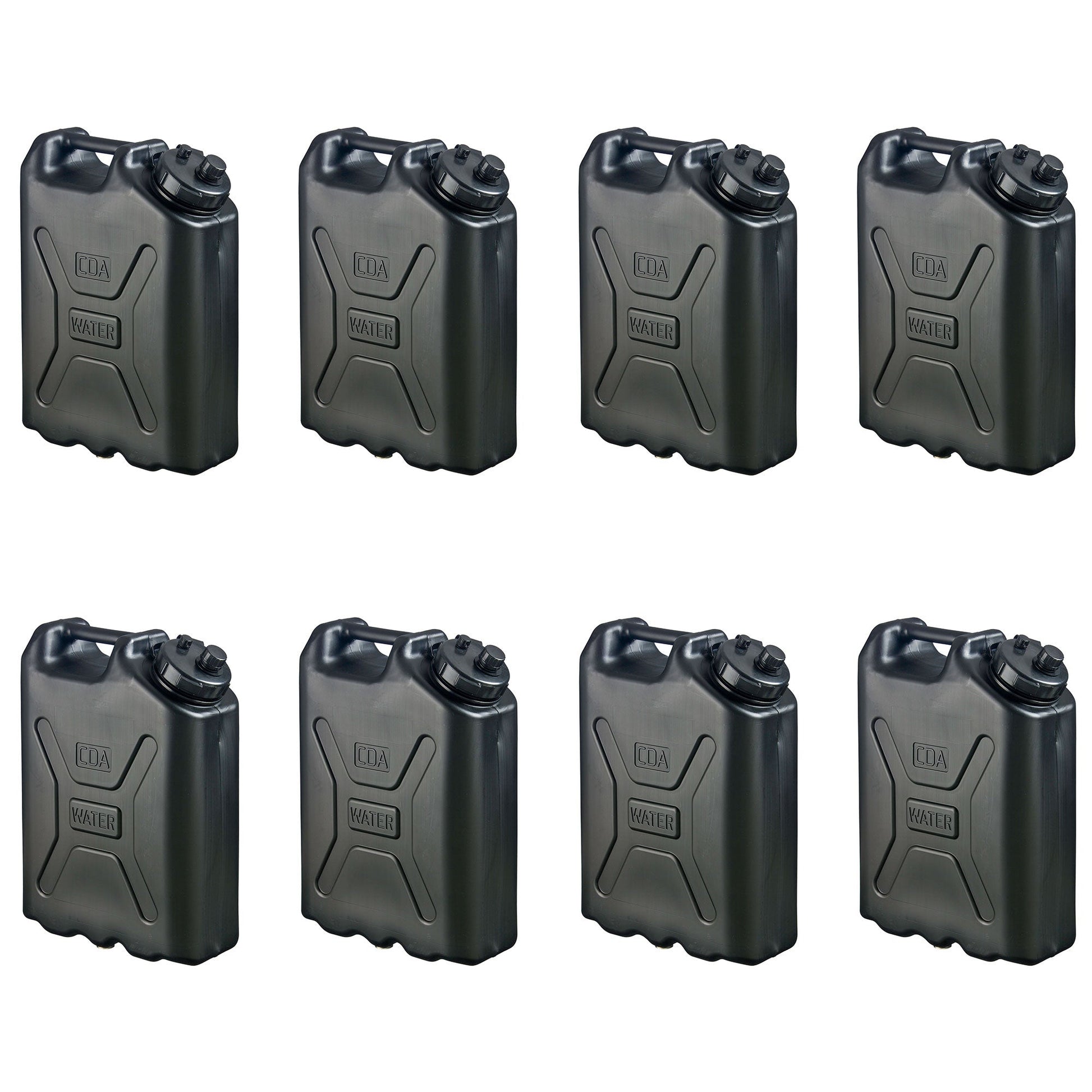 Scepter 5 Gallon Heavy Duty Military Style HDPE Water Container, (8 Pack), Black