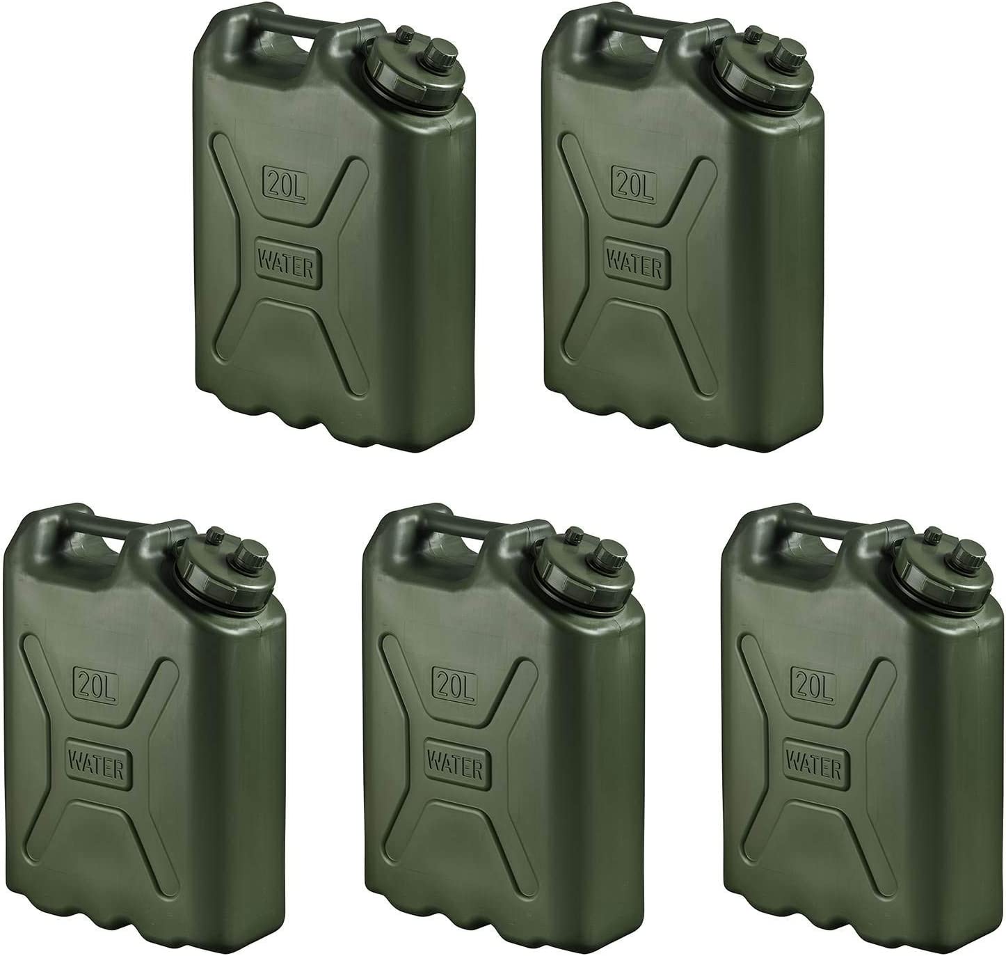Scepter 5 Gallon 20 Liter Portable Water Storage Container, Green (5 Pack)