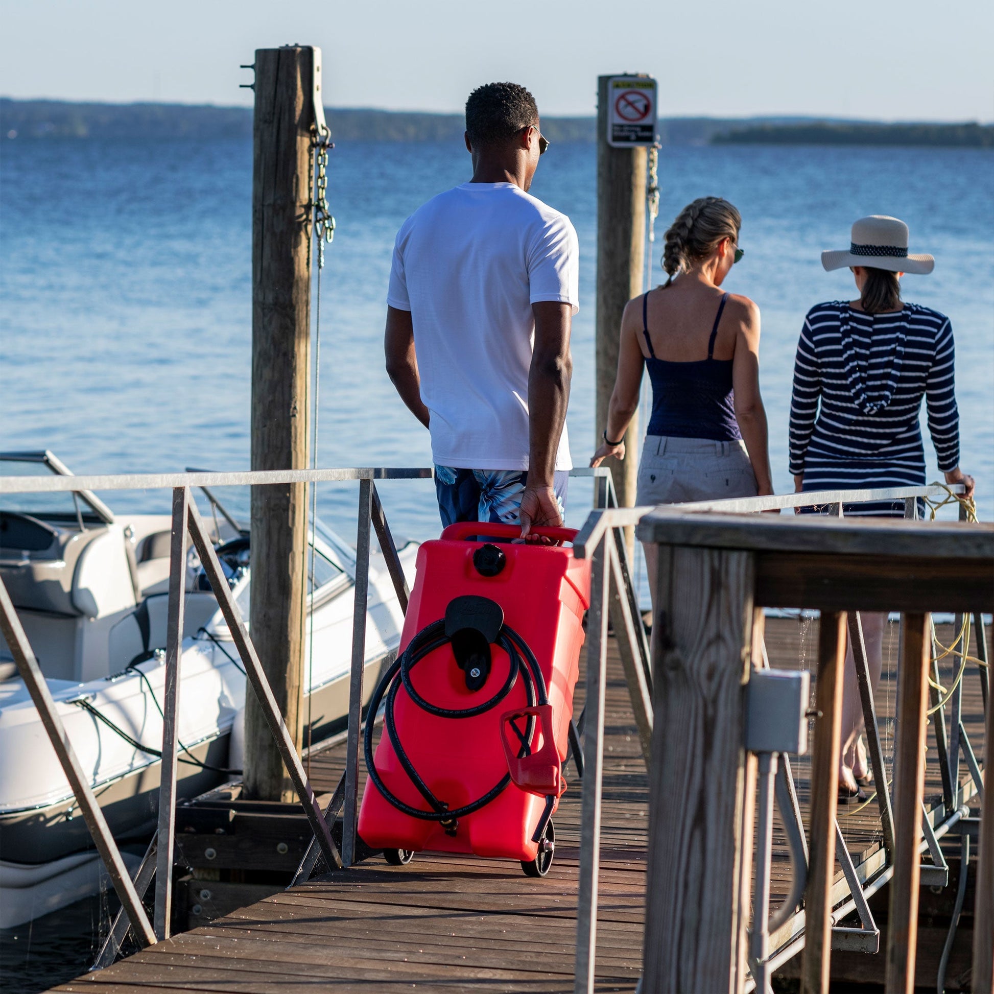 When you've got to take a long walk to refill your gas tank, you ought to have a gas can that can move with you. These Scepter Flo N' Go DuraMax 14-Gallon Portable Fuel Tanks with Pump is an ideal solution for farm, rural, and marine use thanks to their sturdy wheels, tall body, and handle.
