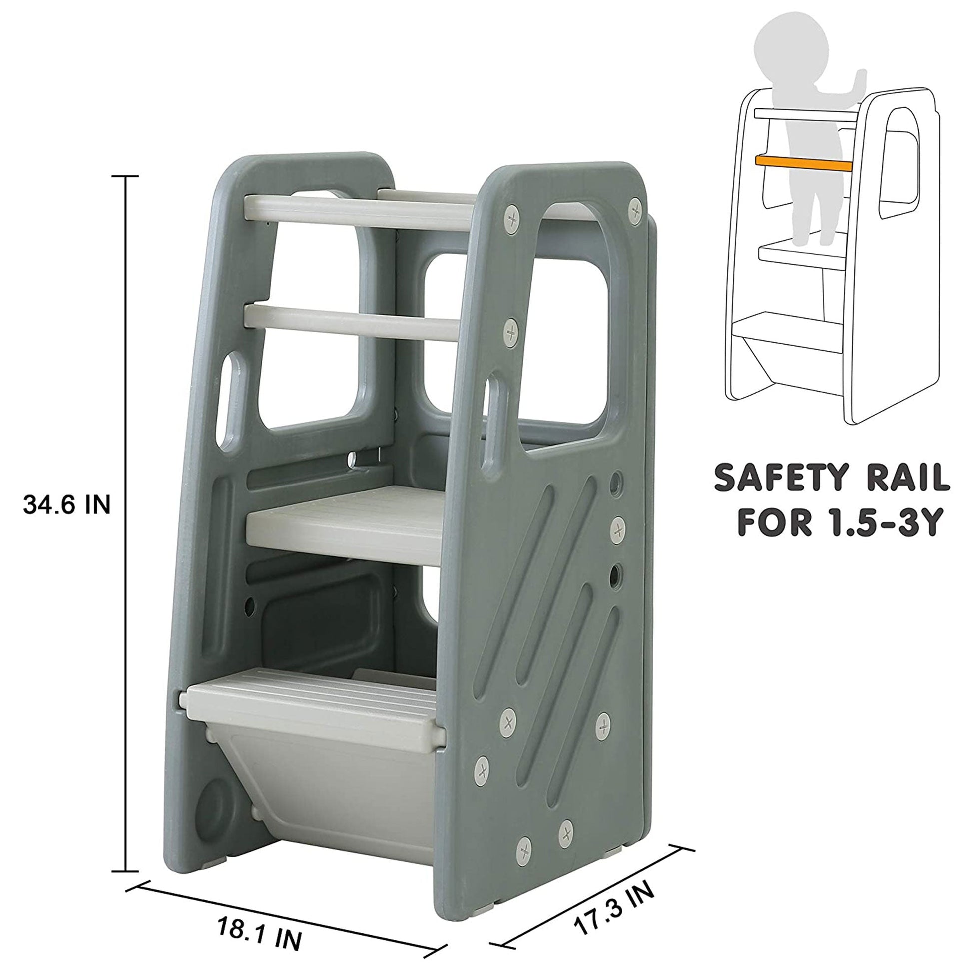 - Designed with safety in mind, high sides surround the child and aid balance while washing hands, brushing teeth, or tackling chores