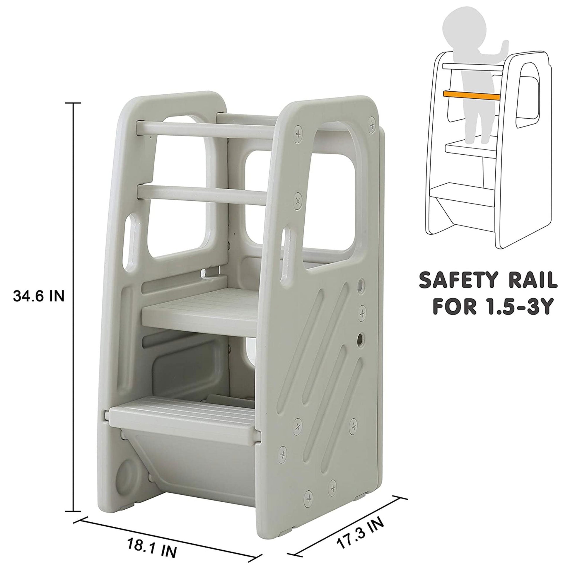 - Designed with safety in mind, high sides surround the child and aid balance while washing hands, brushing teeth, or tackling chores