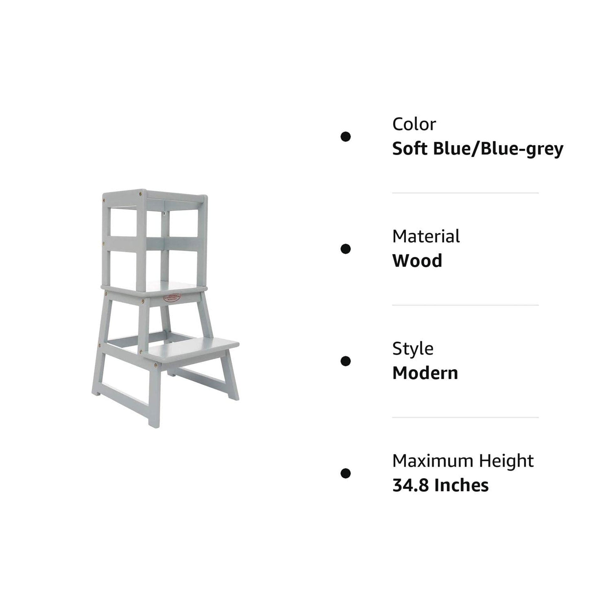 Coated in child-friendly polyurethane paint, this vibrant addition adds a pop of color to your kitchen and ensures effortless cleaning, because messes are all part of the fun. This durable stool can hold up to 150 pounds and has a safety rail to keep your child secure. Its wide platform and 4 anti-slip strips ensure stability, so no worrying about slipping or sliding. With an opening height of 25.7 inches, even little chefs can climb up easily, helping them feel more independent and confident. Designed with your child's age and stature in mind, this kitchen essential is tailored for toddlers aged 18 to 36 months. Standing at a proud 34.8 inches tall and measuring 18.1 inches in length, it's the ideal size to accompany your mini chef as they embark on culinary escapades, from mixing batter to reaching for ingredients on the top shelf.