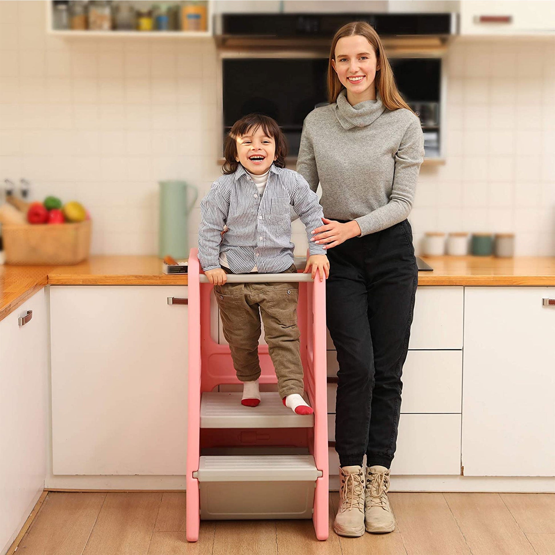 - Toddlers can learn how to help in the kitchen, brush their teeth, wash their hands, and more with this learning stool that grows with them