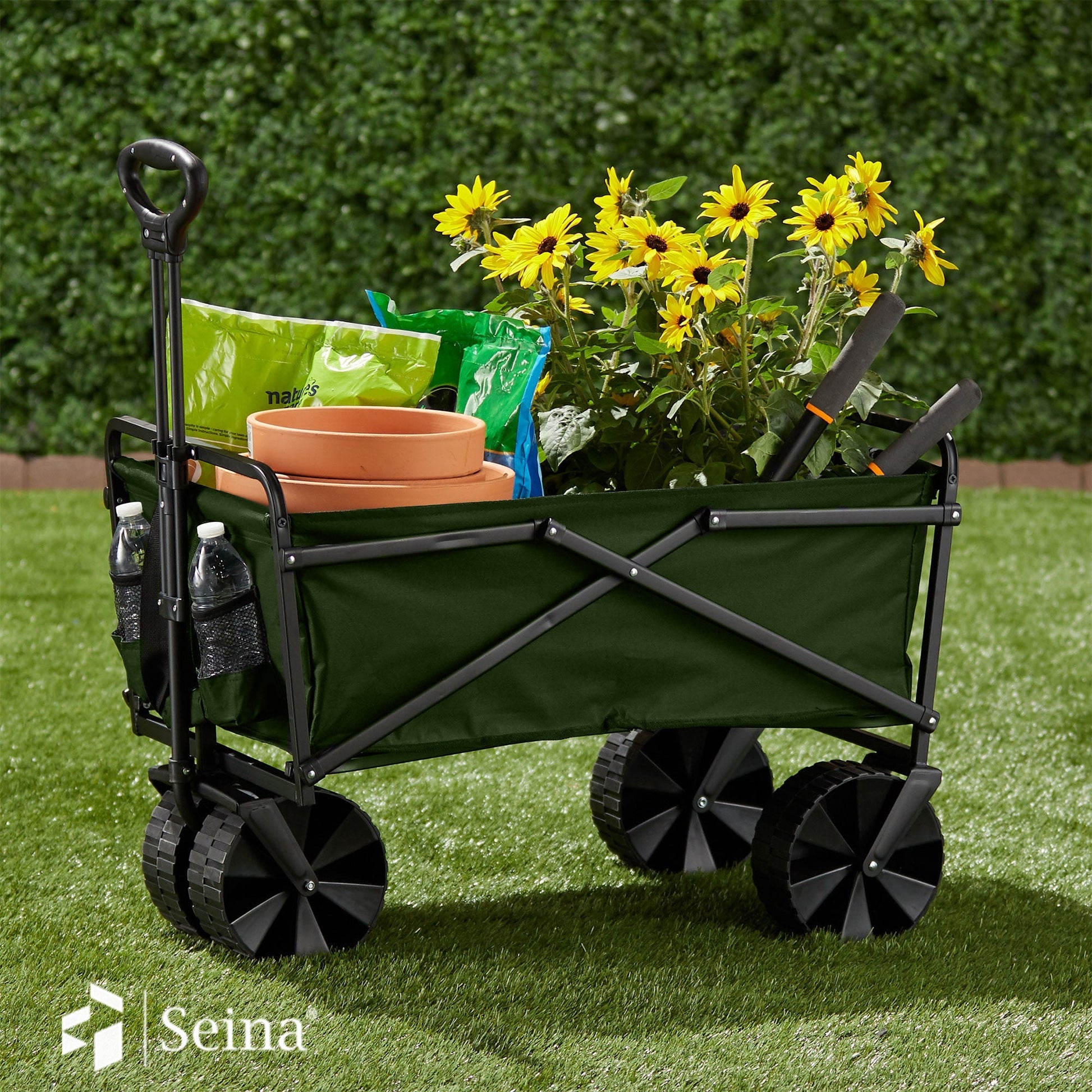 Seina 150lb Capacity Collapsible Steel Frame Outdoor Utility Wagon Cart, Green