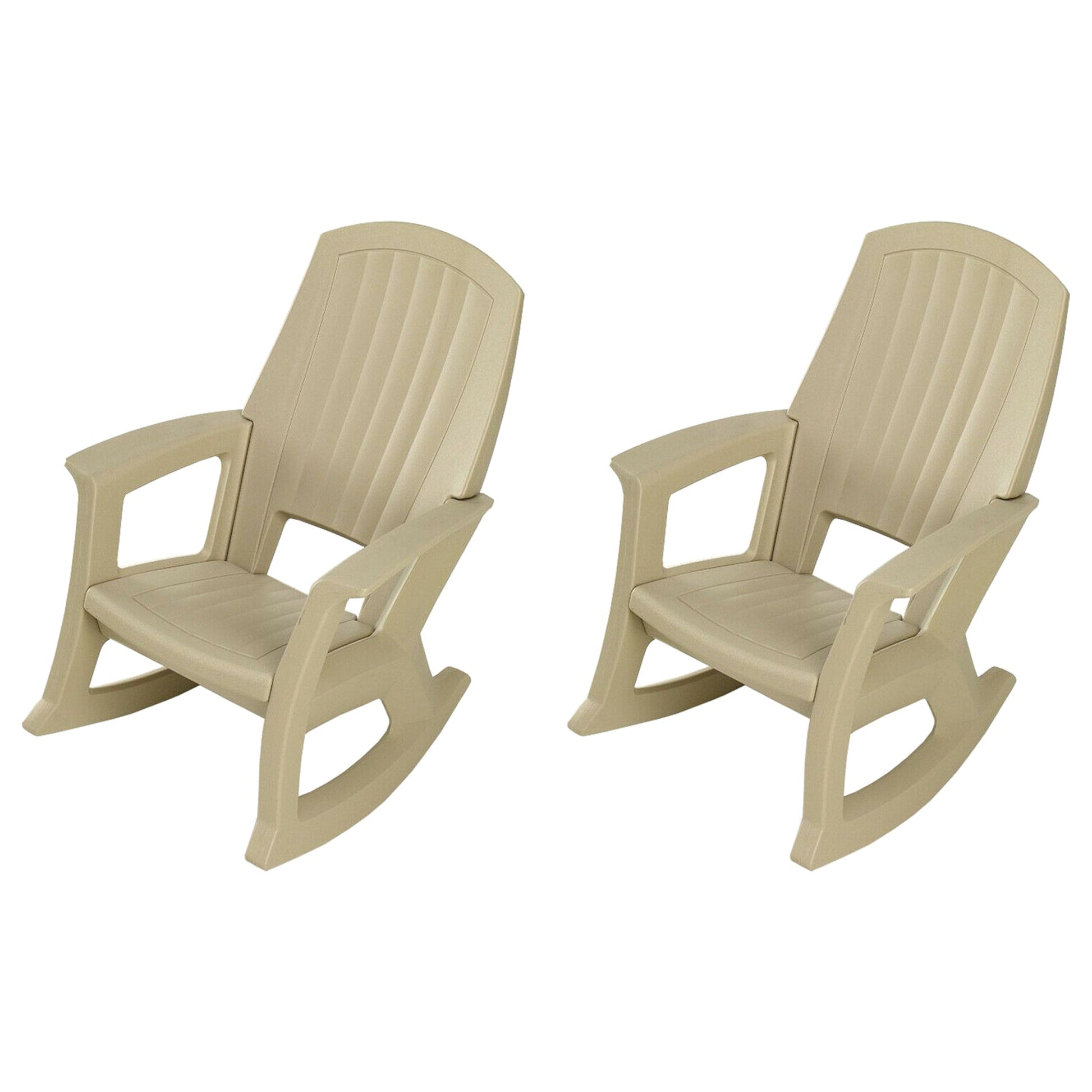 Semco Plastics Rockaway Heavy Duty Plastic Outdoor Rocking Chair, Tan (2 Pack)