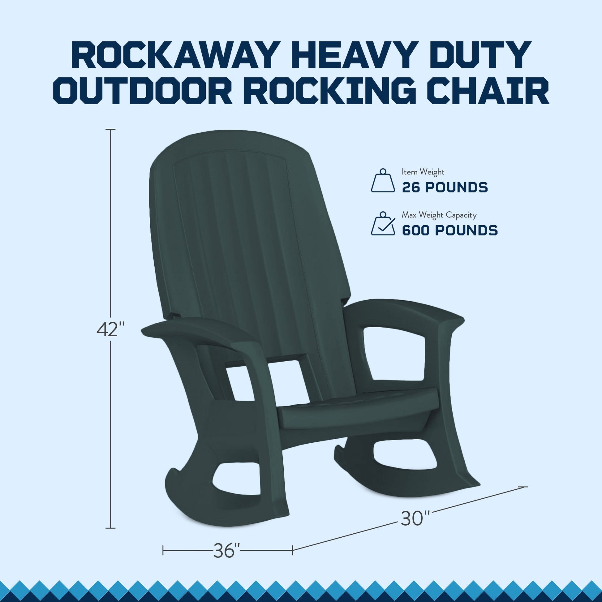 - Relax on your porch, deck, or patio in the Rockaway Heavy Duty All-Weather Outdoor Rocking Chair by Semco Plastics