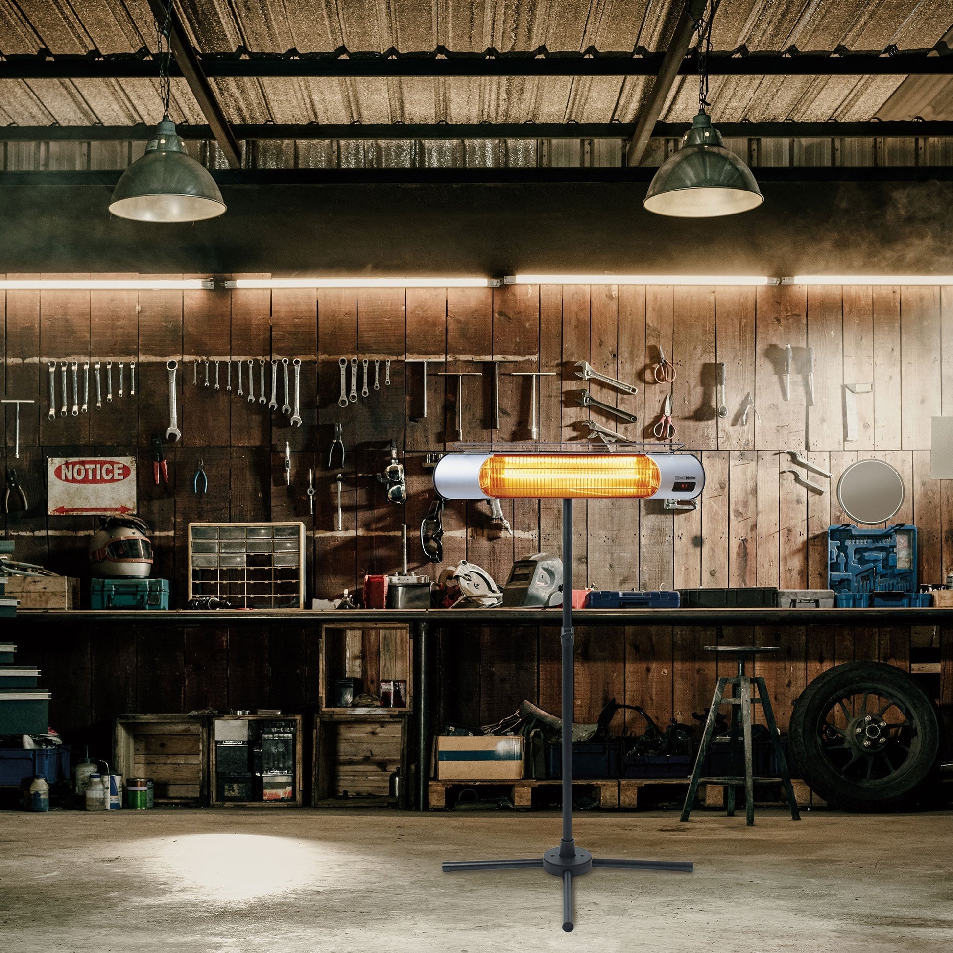 Mount this heater vertically or horizontally on almost any outdoor wall using the included metal fittings, or place it on the included tripod stand for ultimate portability convenience. The 1000-watt heater reaches maximum output in only 0.2 seconds while measuring 30 inches long, 5.3 inches wide, and 5.5 inches tall.