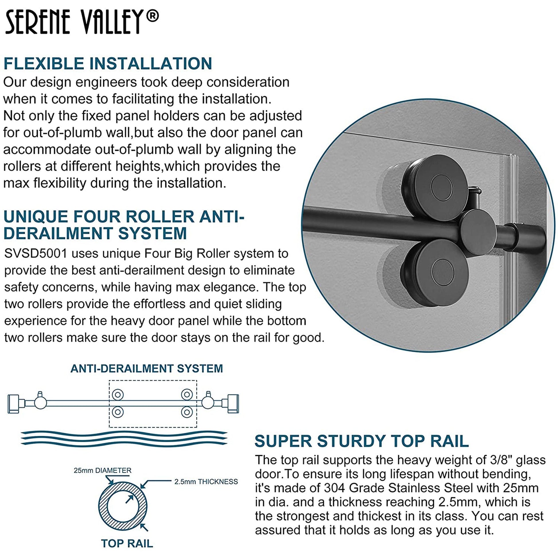 Stepping in and out of the shower can be a messy process if you don't have the right equipment. Wash up with ease with the 56 x 74 Inch Big Roller Sliding Shower Door from Serene Valley.