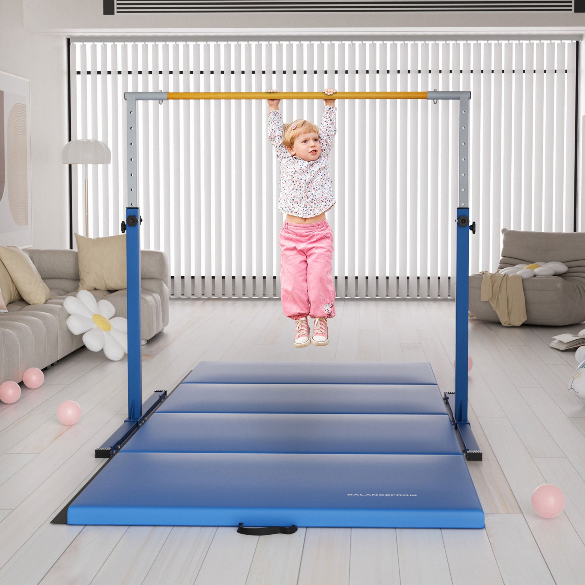 Signature Fitness Adjustable Folding Steel Gymnastics Bar, for Ages 3 & Up, Blue