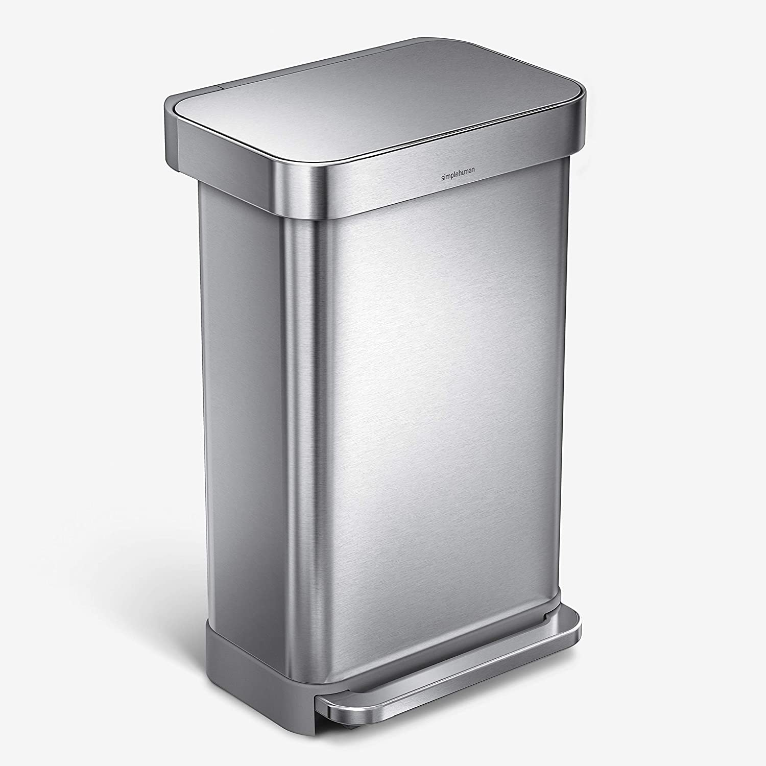 simplehuman CW2024 45-Liter Nano-Silver Clear Coat Brushed Stainless Steel Rectangular Liner Rim Step-On Trash Can