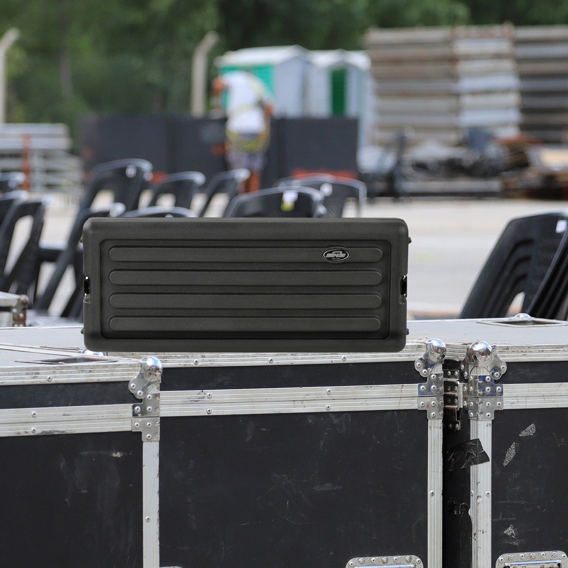 Designed for musicians, DJs, and A/V professionals, the SKB 4U Shallow Roto Rack represents the pinnacle of gear protection and transport solutions. Molded from Linear Low Density Polyethylene (LLDPE), this case offers the ultimate in strength and impact resistance, ensuring your equipment stays safe in the most demanding situations. Whether on the road, in the studio, or at an event, the durability and security of the SKB Roto Rack are unmatched.