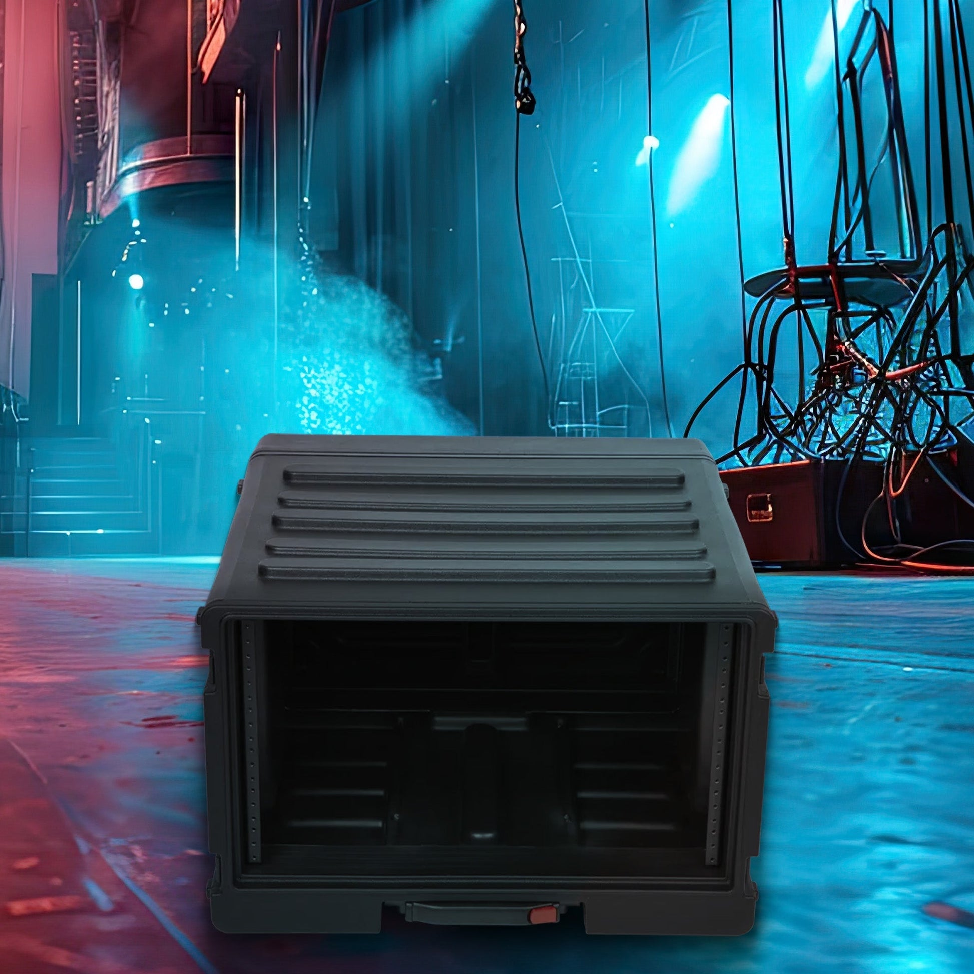 With 6 rack units (6U) and a 17.6" rack depth (front to rear rail), it offers ample space for your critical rack-mounted equipment. Front and rear steel-threaded rails (10-32) ensure secure mounting, while included rack screws streamline setup. The front and rear lids are gasket-sealed for water resistance, keeping your gear safe from moisture and dust during transport or storage.