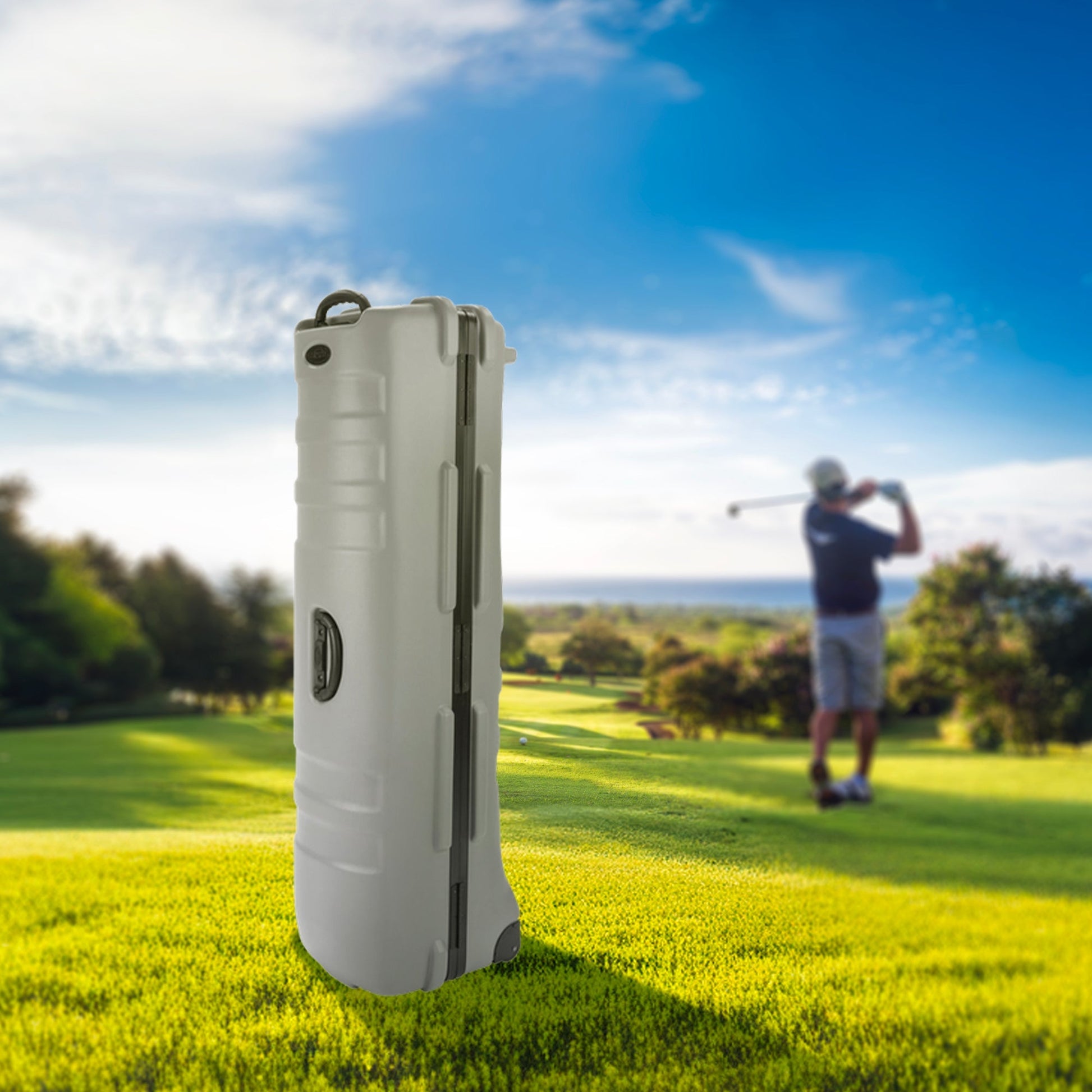 Enjoy your next extravagant once-in-a-lifetime golf outing on those incredible courses that are across the country. Don't worry about rentals, play in confidence and comfort with your own clubs. Ensure that your clubs are safe and secure during your travels with the SKB Cases ATA Staff Pro XL Hard Plastic Storage Wheeled Cart Golf Travel Case