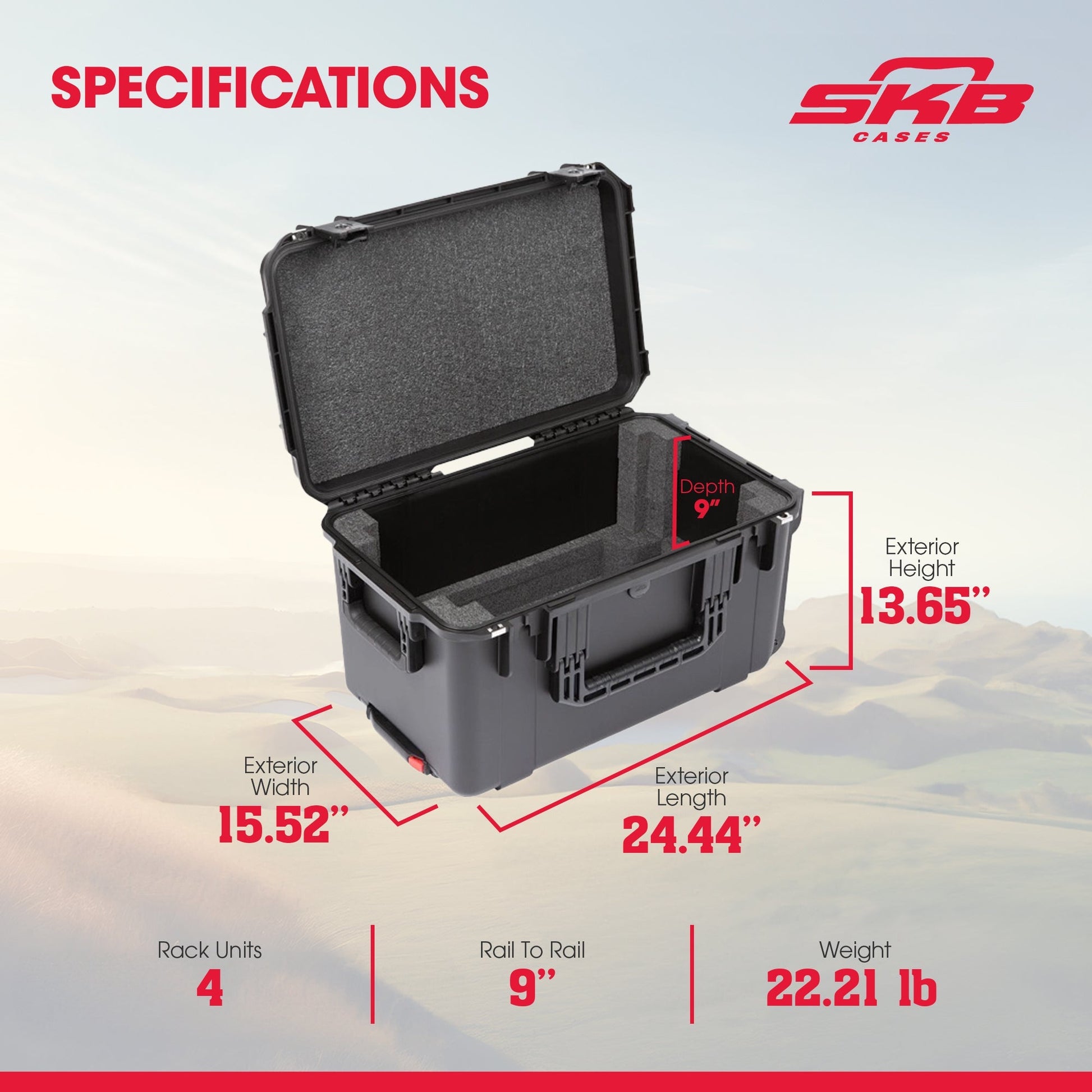- 4U removable injection-molded shock rack with 9-inch depth keeps gear secure