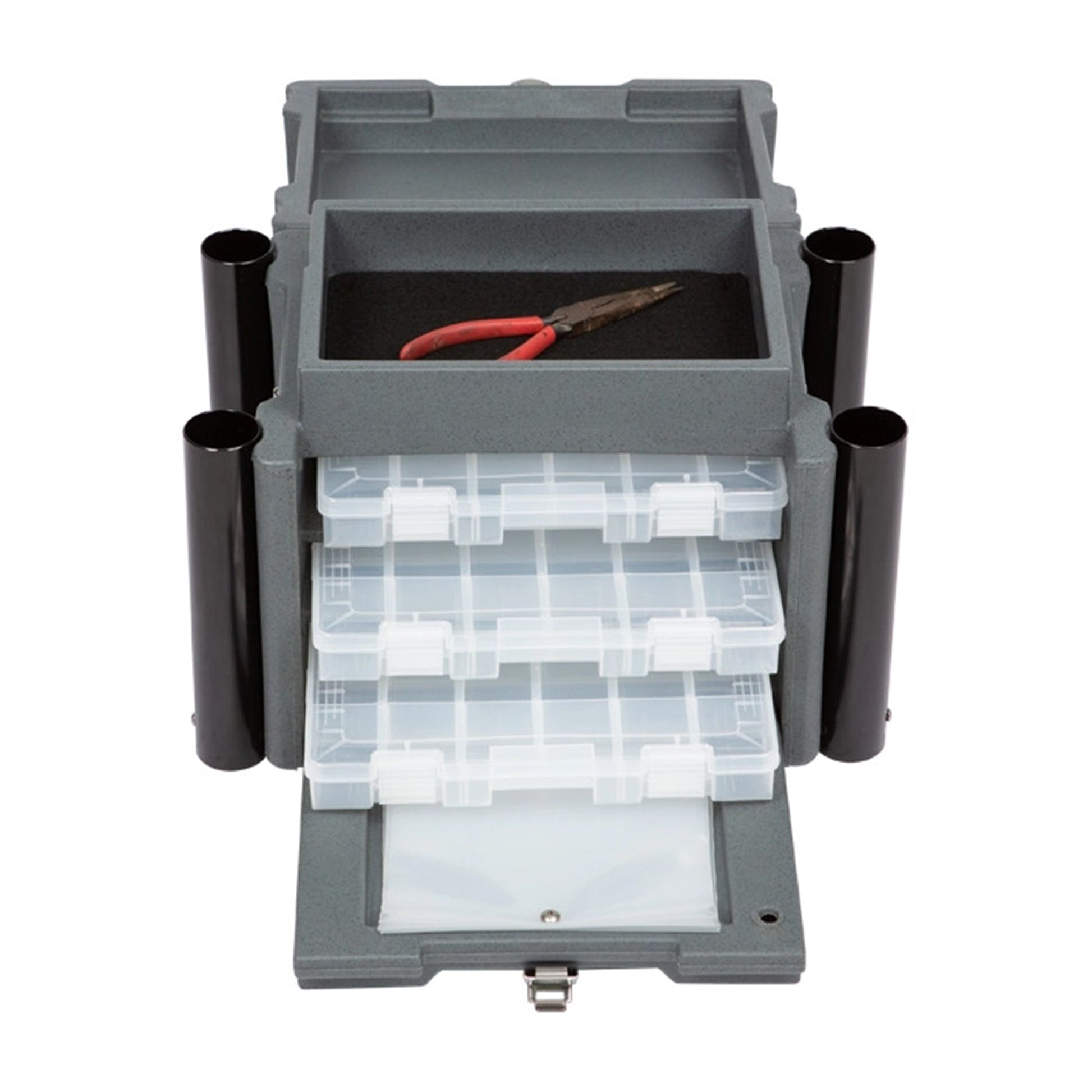SKB Medium Tackle Box, 4 Drawers with Dividers and 2 Soft Exterior Pockets, Gray