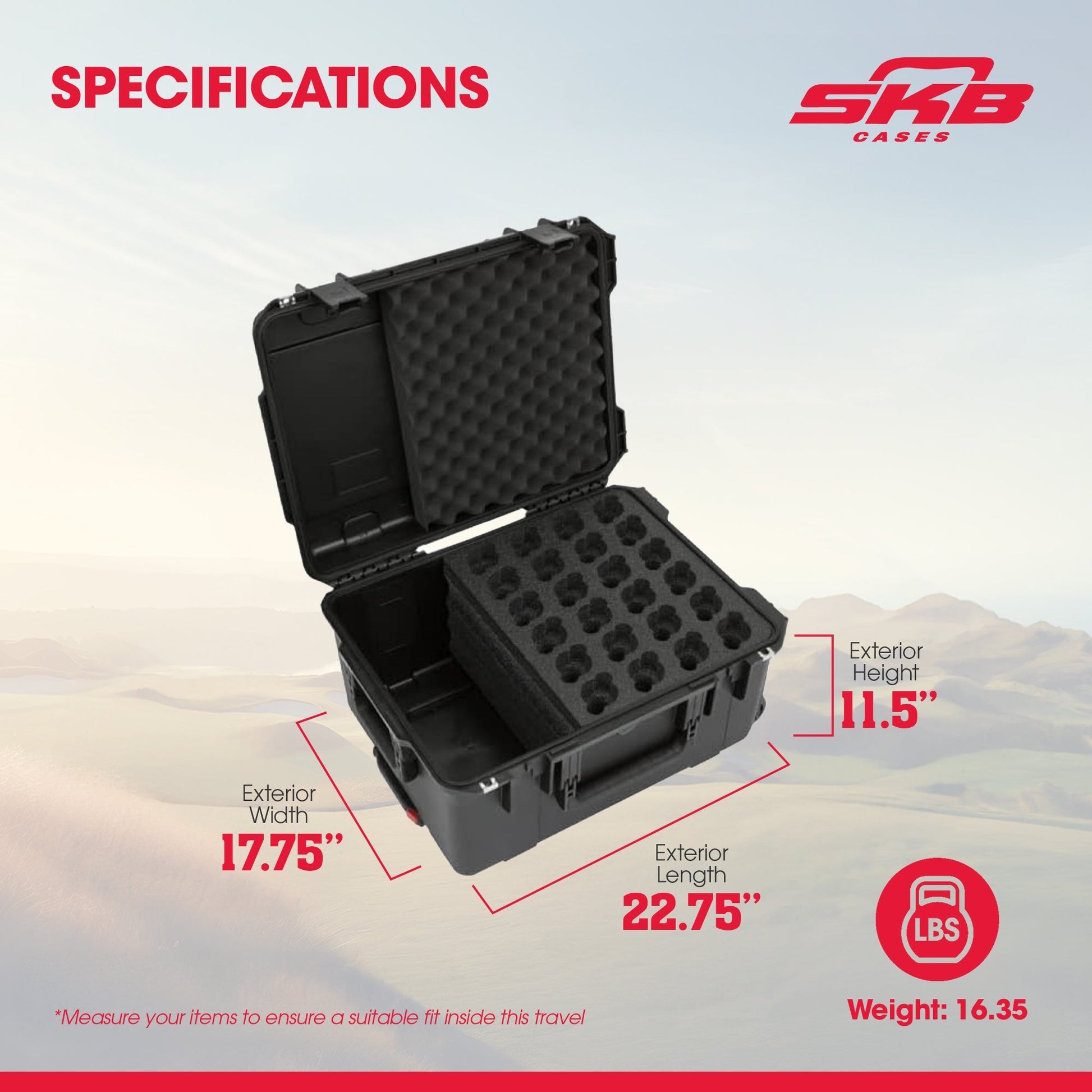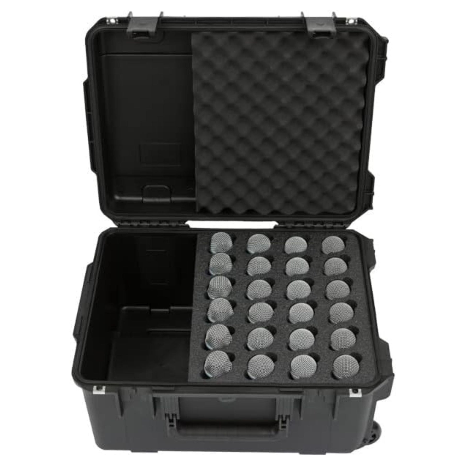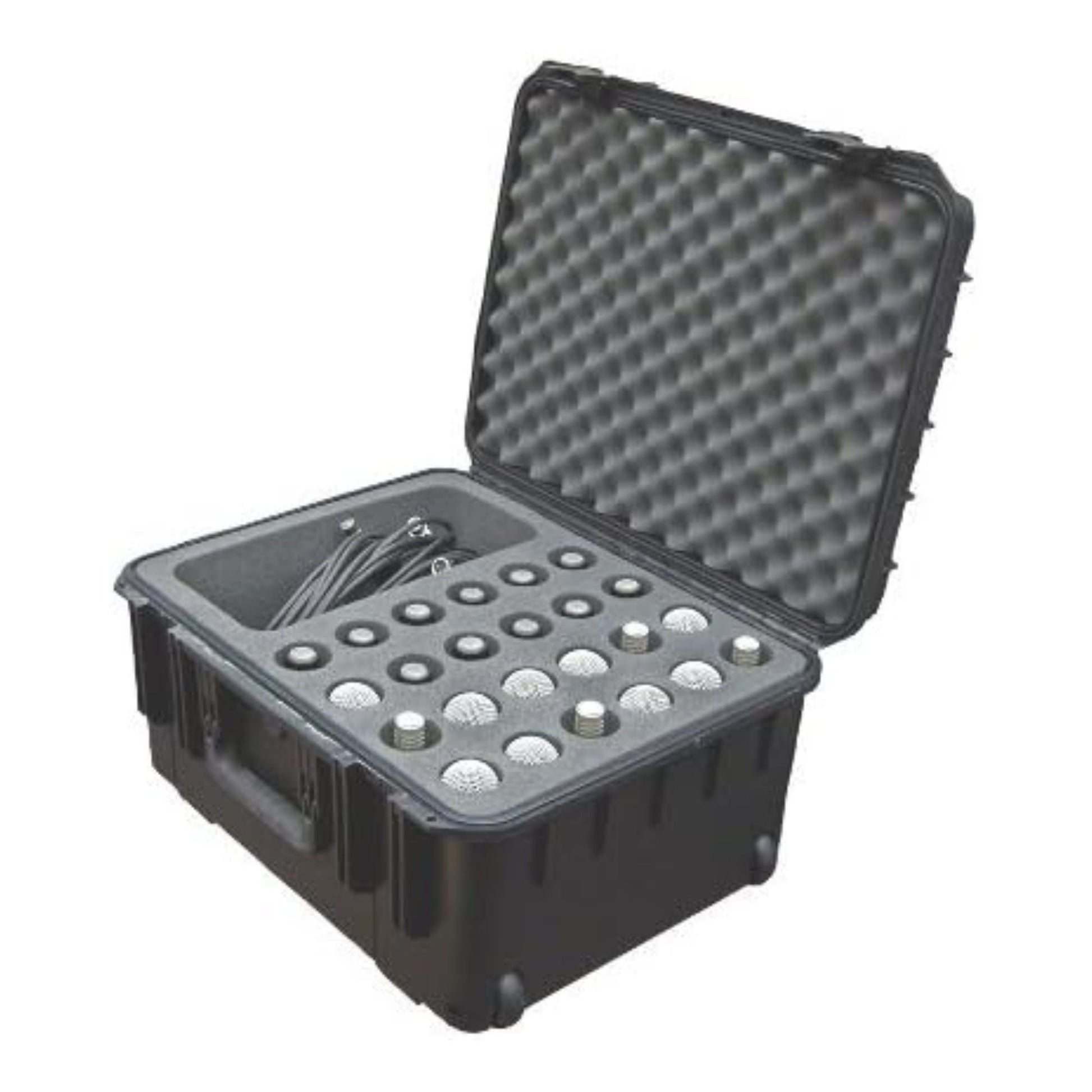 SKB Microphone Hard Case, 24-Slot Foam Interior with Cable Storage and Wheels