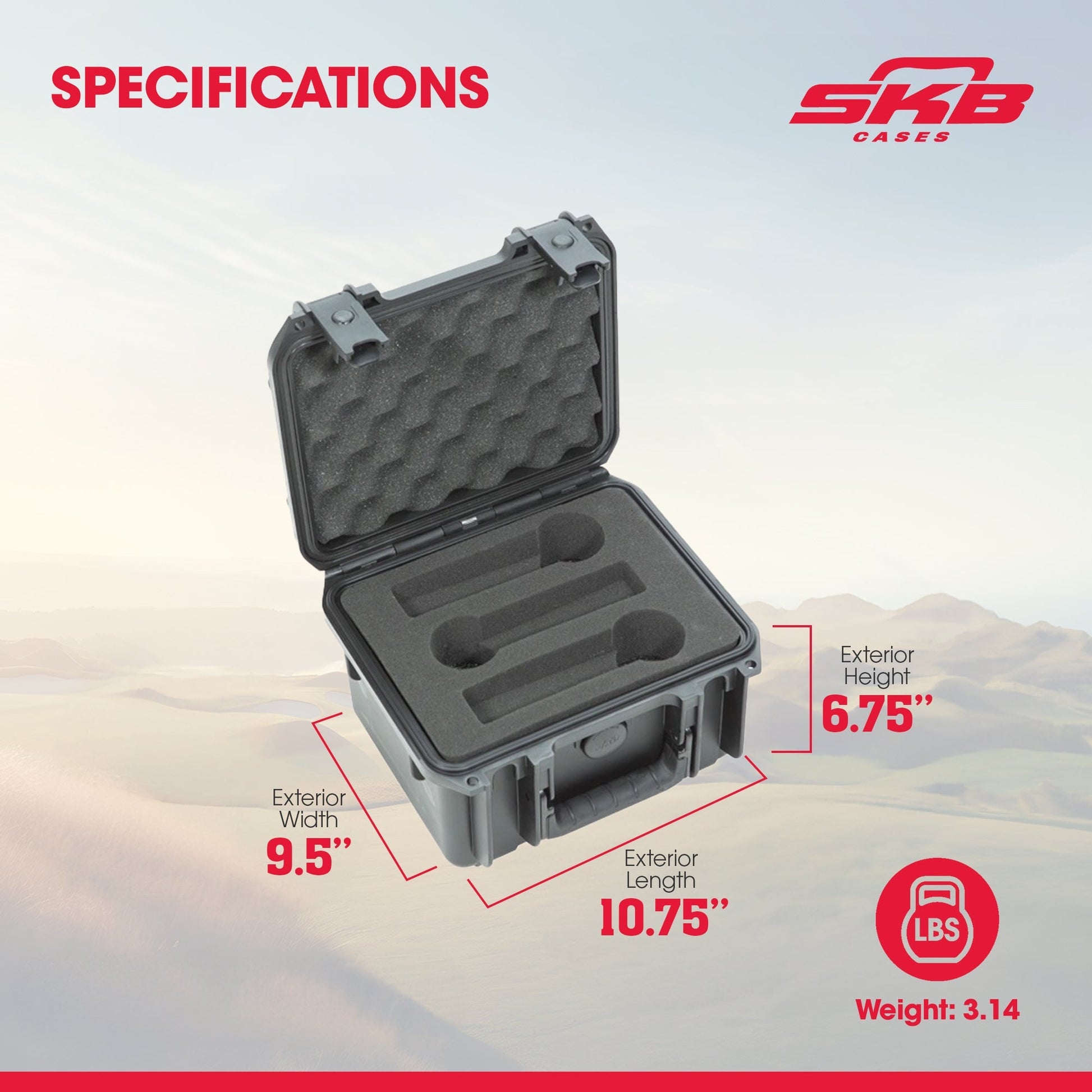 Molded from high-strength polypropylene copolymer resin and lined with PE foam, this rugged case securely holds standard microphones in custom horizontal slots. Each mic cutout measures 1.5"W × 6.75"L and includes removable end foam to fit mics up to 8.5-inch long.