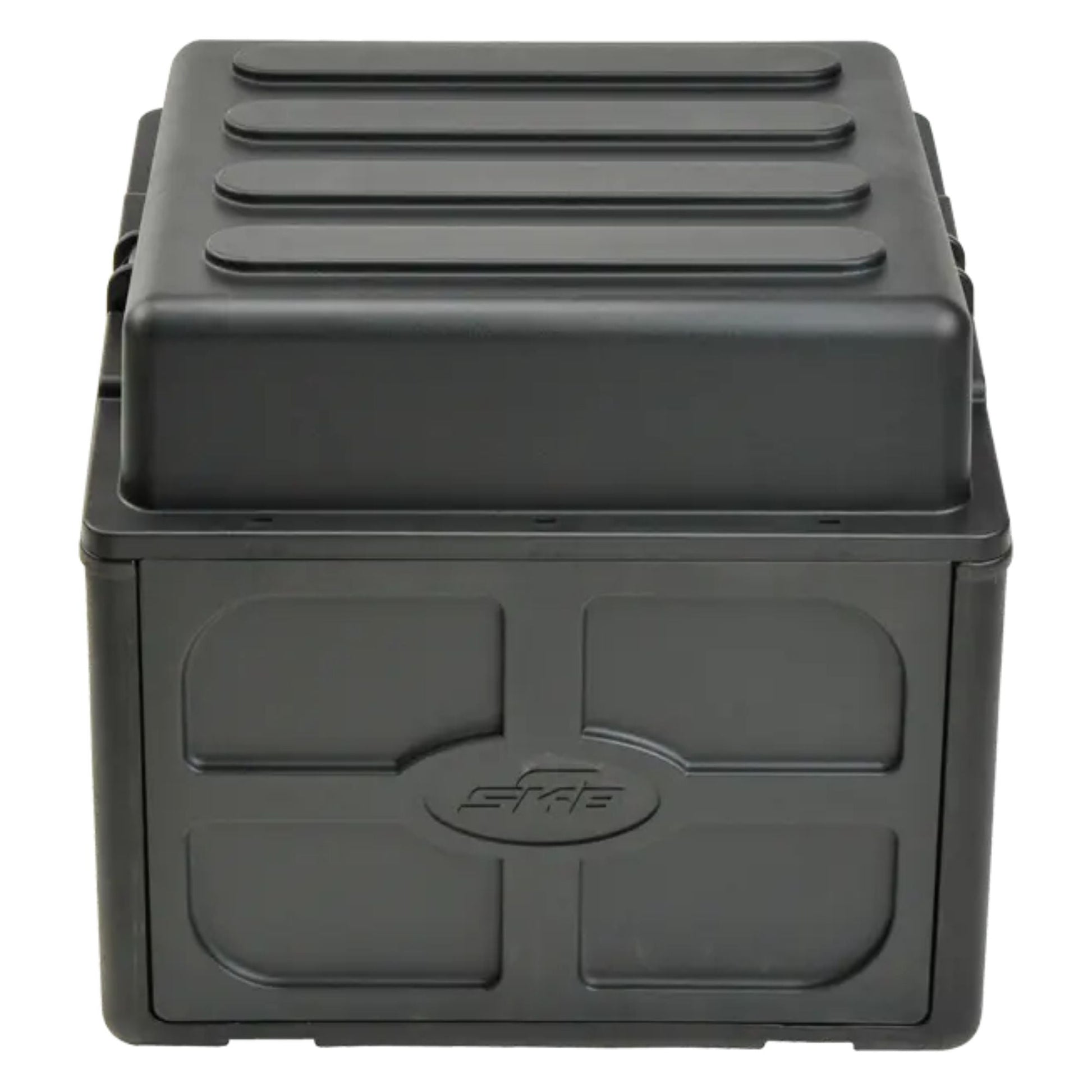 The case is constructed with a one-piece base made from Roto-Molded Linear Medium Density Polyethylene (LMDPE), offering exceptional durability and impact resistance. The front, rear, and top lids are injection molded from Rubber Modified Styrene (RMS), adding further strength while keeping the overall weight manageable. The hard flat top is designed for easy stacking during transport or storage, and the spacious interior allows enough room to mount an optional AV-8 shelf—even with the lid closed.