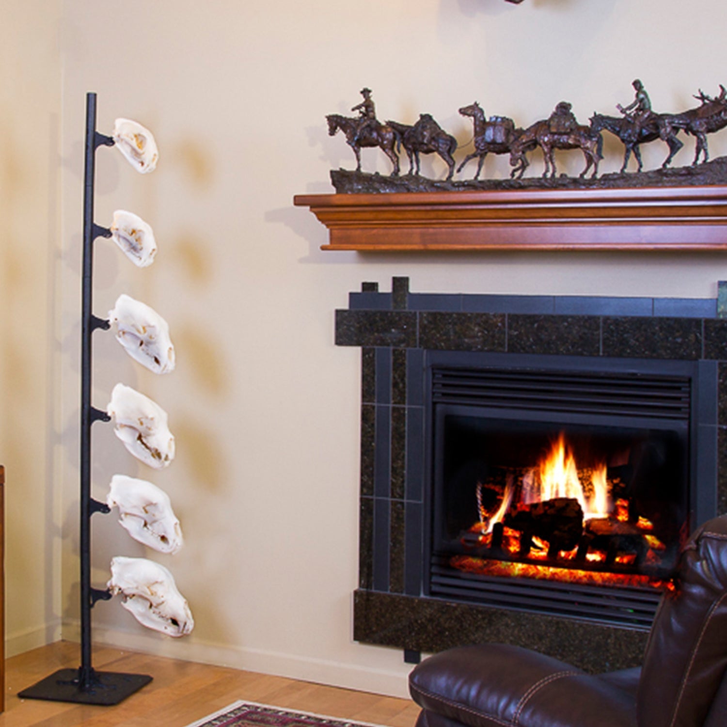 This hunting floor display has a durable 6-foot frame constructed from thick steel protected from rust and scratches by a powder-coated finish in a handsome black color. The 5 sections allow for 360-degree viewing angles, so you can find the best height and placement to let your trophies shine. Take advantage of unused floor space in your home office, living room, or summer lodge, and gloriously show off your most prize-worthy skulls. For complete customization, align your trophies vertically or stagger from top to bottom including all of one species or a variety of turkey feathers, deer antlers, alligators heads, sheep skulls, and more. Additional accessories (not included) allow you to adapt the display as you continue to add to your collection.