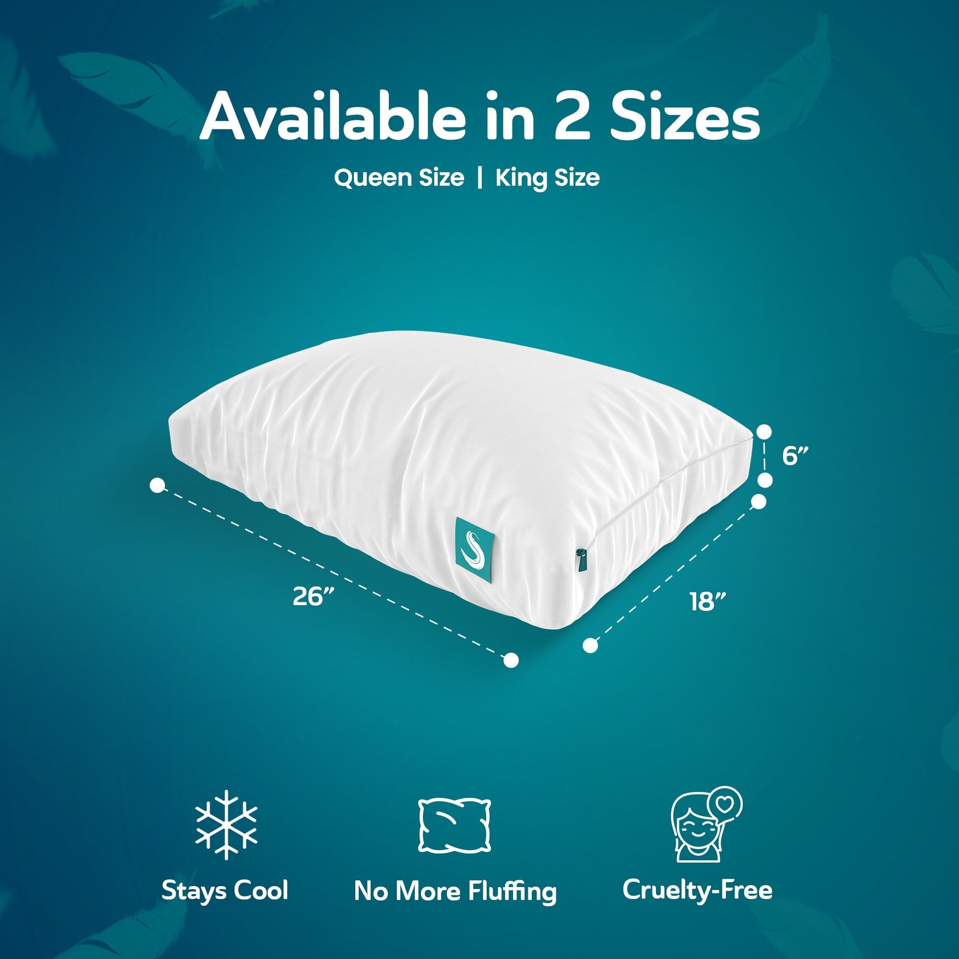 Sleepgram Bed Support Sleeping Pillow with Microfiber Cover, Queen Size, White