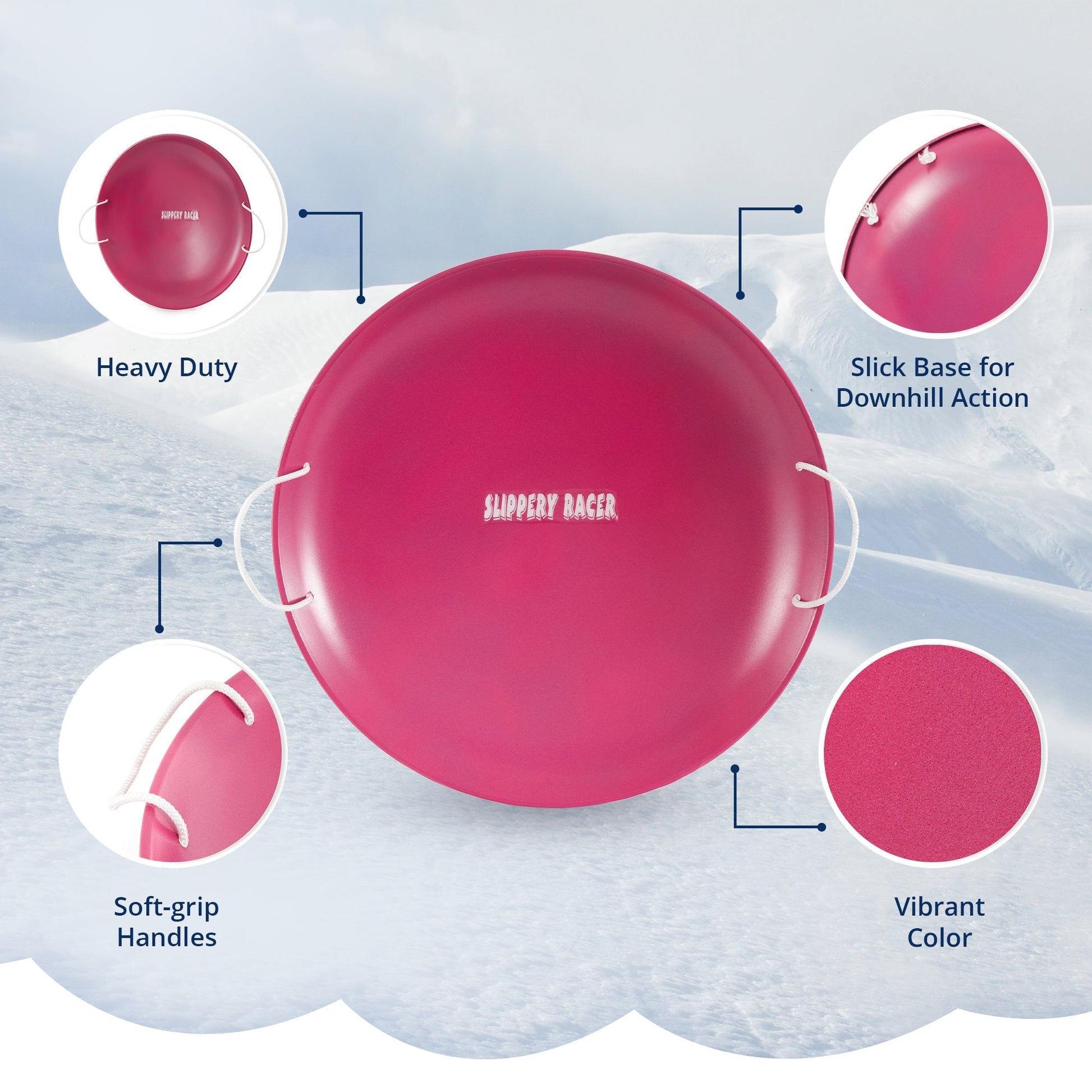 Slippery Racer ProDisc 26" Heavy Duty Metal Saucer Sled with Rope Handles, Pink