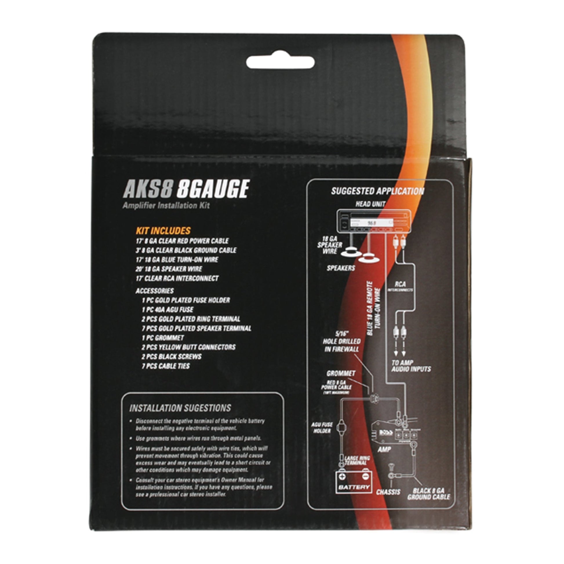 - Package includes 2 8-gauge car amplifier installation kits