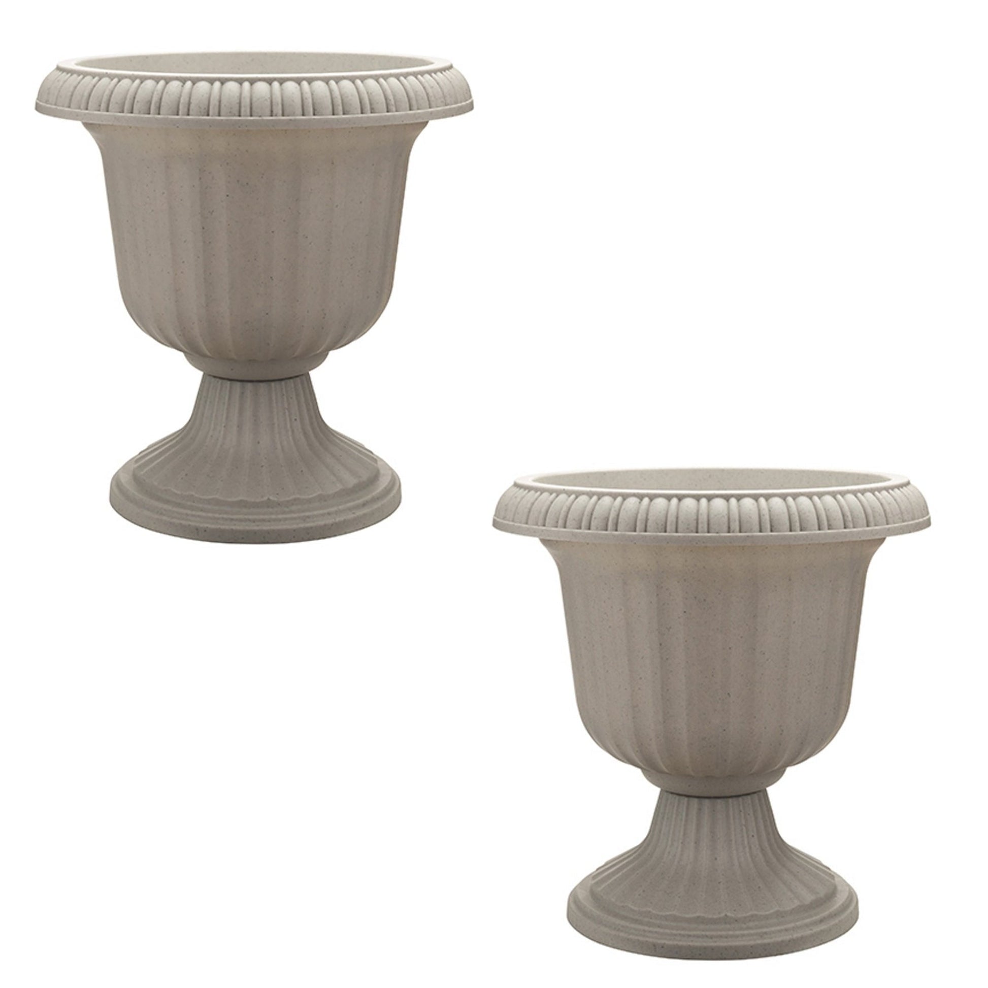 Southern Patio 14" Outdoor Lightweight Resin Utopian Urn Planter, Stone (2 Pack)