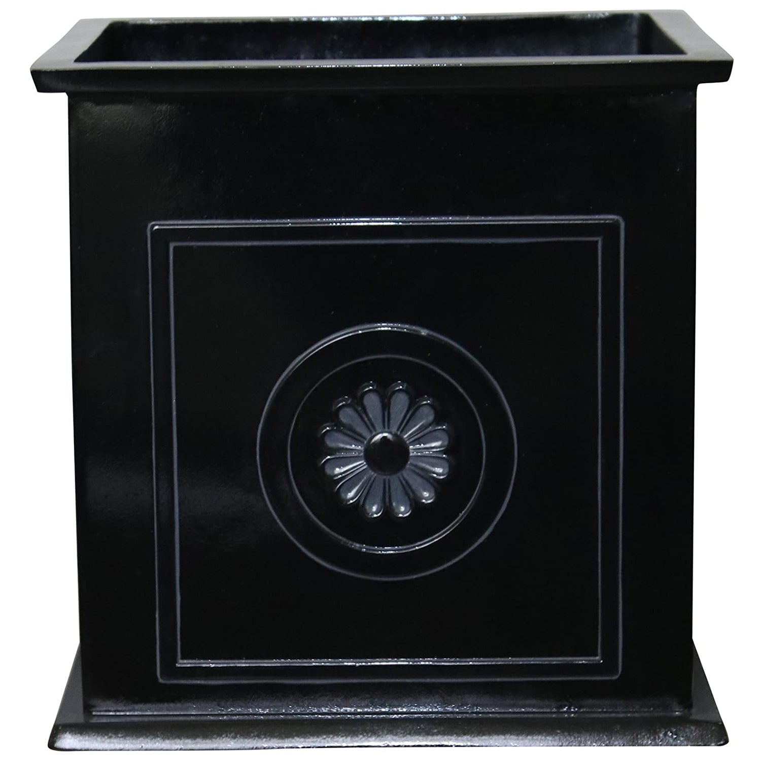 This bundle comes with 2 square resin planter urns. Molded from a blend of resin and ceramic, the backyard patio urn planter is both lightweight and durable, topped by a black glossy glaze to protect against rain, snow, and sun. Molded lines and a lotus medallion crest add to the sophisticated appeal of the design.