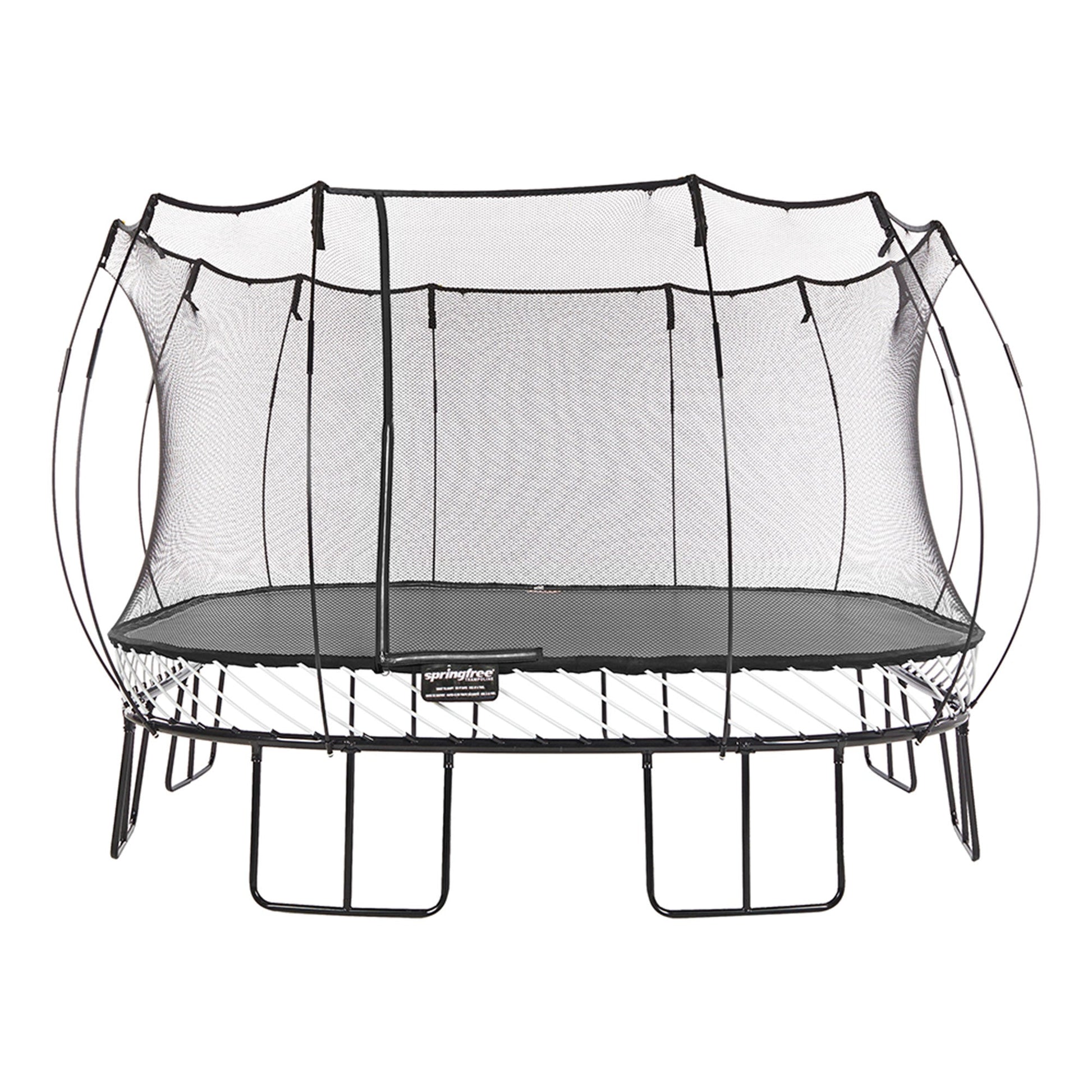 The square trampoline is designed with curved corner edges to nicely tuck into any yard. With 155 square feet of jumping freedom for toddlers, kids, and adults weighing less than 220 pounds, you'll have hours of outdoor fun. The innovative design ensures safety, with flexible rods that eliminate the need for metal springs. These redefined rods keep little feet and toes safe from getting pinched or trapped. Experience how the soft edges gently absorb shock for bounces that are extra forgiving on knees and joints. Surrounded by an enclosure net, your ambitious jumpers will be safe from falls.